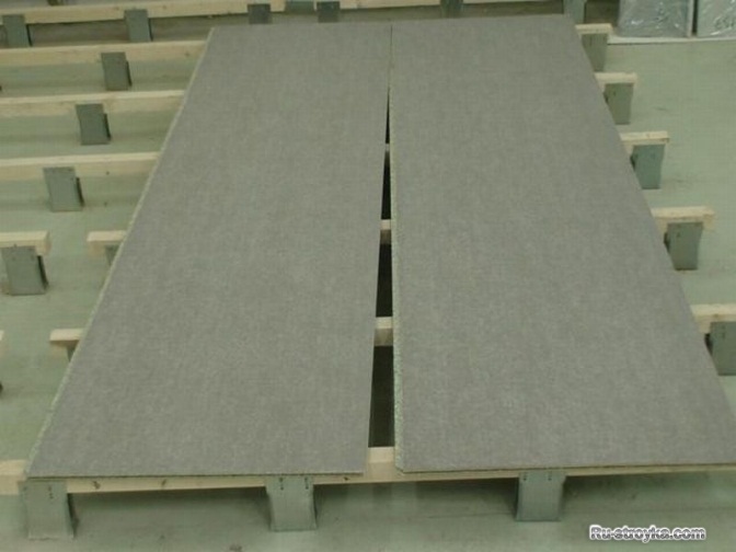 Правилом хорошего тона считается использование ЦСП при укладке пола или формирование кровельного пирога вместо устаревших ДСП. При этом совершенно не нужно менять технологию. Обычно пол устраивают по лагам с сечением 50х80 мм и шагом около 600 мм. Для работ такого типа используют более прочные марки плит с толщиной от 20 до 26 мм. С их помощью можно постелить основание под пол, сформировать подстилающий или выравнивающий слой. Также ЦСП используют для постилки теплых полов и чистых полов с лицевым слоем. Отдельно нужно отметить возможность стелить пол из цементно-стружечной плиты толщиной 24 и 26 мм непосредственно на землю. Это позволяет возводить складские и подсобные помещения на насыпном грунте, даже при отрицательных температурах. То есть затраты на ремонтные и подсобные работы существенно сокращаются. Во-первых, не нужно подбирать подходящее время и температуру, во-вторых, укладка такого пола производиться в краткие сроки, в-третьих, при минимуме финансовых затрат получается полноценное рабочее помещение.