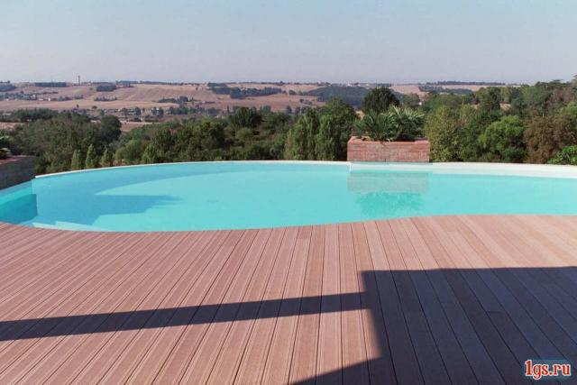 Террасная доска – универсальный материал для устройства пола снаружи помещений. Основные места её укладки – террасы, беседки, садовые дорожки, причалы. Этот материал выдерживает высокий уровень влажности и прямой контакт с водой. А также имеет специальный профиль «вельвет», предохраняющий от скольжения.