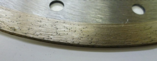 Алмазный диск, собственно, не режет, а перемалывает материал в мелкую пыль. По мере резки металлическая связка истирается и кристаллы алмаза вылетают с поверхности диска, открывая следующий слой алмазов. Таким образом, алмазный диск во время работы стирается и имеет конечный ресурс использования.
