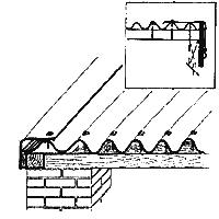 | 14. Оформить чипец можно также способом, указанным на этом рисунке. Вы можете загнуть и прибить край листа к чипцовой доске. Рекомендуется только при плюсовой температуре. |