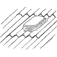 | 22. Вентиляционная труба Ондулин оформляет выпуск вентиляционных каналов через кровлю. Прибивайте вентиляционную трубу по каждой волне на стыке с листами. Верхний лист должен иметь нахлест поверх основания вентиляционной трубы. |