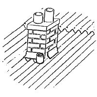 | 17. Используйте покрывающий фартук Ондулин на торцевом стыке кровли с вертикальной стеной (например, с печной трубой). Стык покрывающего фартука с вертикальной стеной необходимо надежно гидроизолировать. Прибивать покрывающий фартук к листу необходимо по каждой волне. |