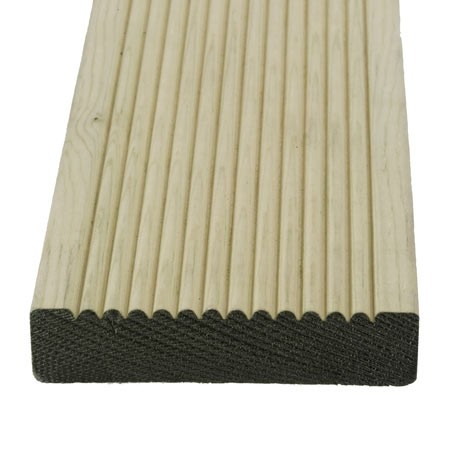 2. Импрегнированная древесина хвойных пород Это пиломатериалы, высушенные и прошедшие пропитку защитным составом. Но не просто пропитку. Суть в методе этой пропитки. Импрегнированные изделия пропитываются в автоклаве, по методу ВДВ (вакуум – давление – вакуум). Невысокая стоимость, долговечность и отсутствие необходимости в дополнительной обработке делают такой вариант террасной доски самым разумным выбором.