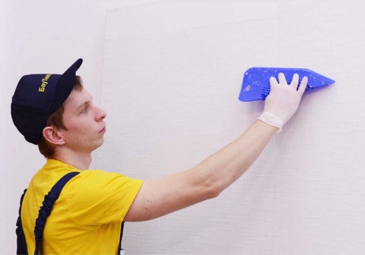 Поклейка осуществляется при комнатной температуре, следует избегать сквозняков и попадания на поверхность прямых солнечных лучей. Стеклотканевые обои имеют лицевую и изнаночную сторону. Лицевая часть находится внутри рулона, изнаночная - снаружи, на нее наклеен стикер: «Сторона наклейки на стену». Лицевая сторона обоев отличается от изнаночной ярко выраженной фактурой и плетением нитей, создающих рисунок. Внимание, клей наносится на поверхность стены, а не на изнаночную сторону обоев!