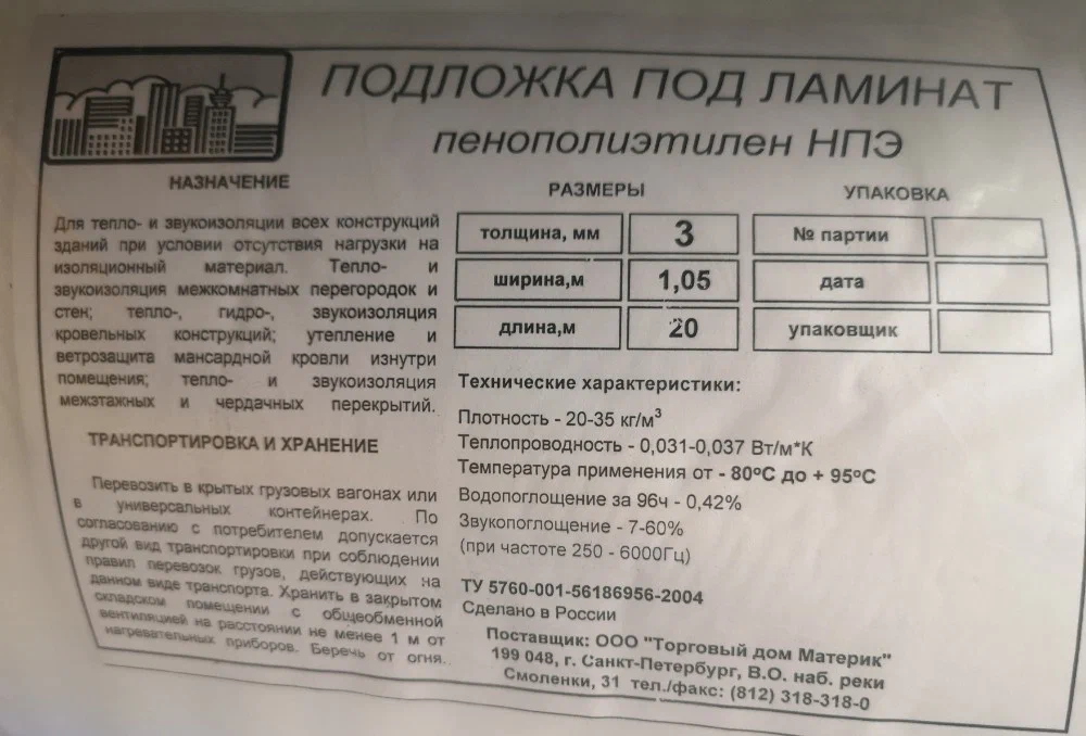 Большой рулон (но метраж ещё не перепроверила), хорошая цена. Не уверена, что 3мм, как будто 2 или 2,5. Использовала не по значению, поэтому прокомментировать её как подложку не могу)) я из неё временные двери в строещемся доме сделала и часть стен затянула - с этой задачей она справилась замечательно.