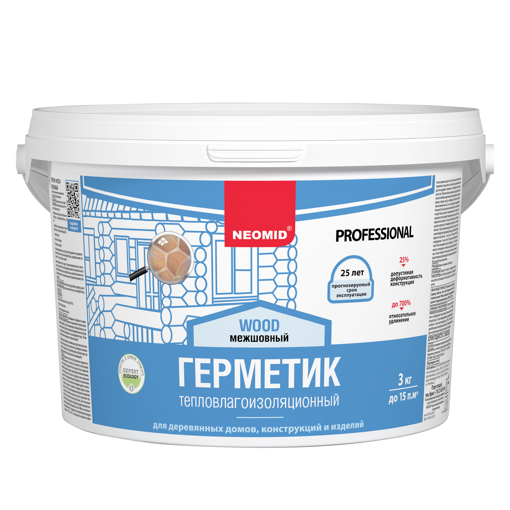 Герметик Neomid Wood Professional межшовный - предназначен для деревянных поверхностей, для заделки и долговременной герметизации.