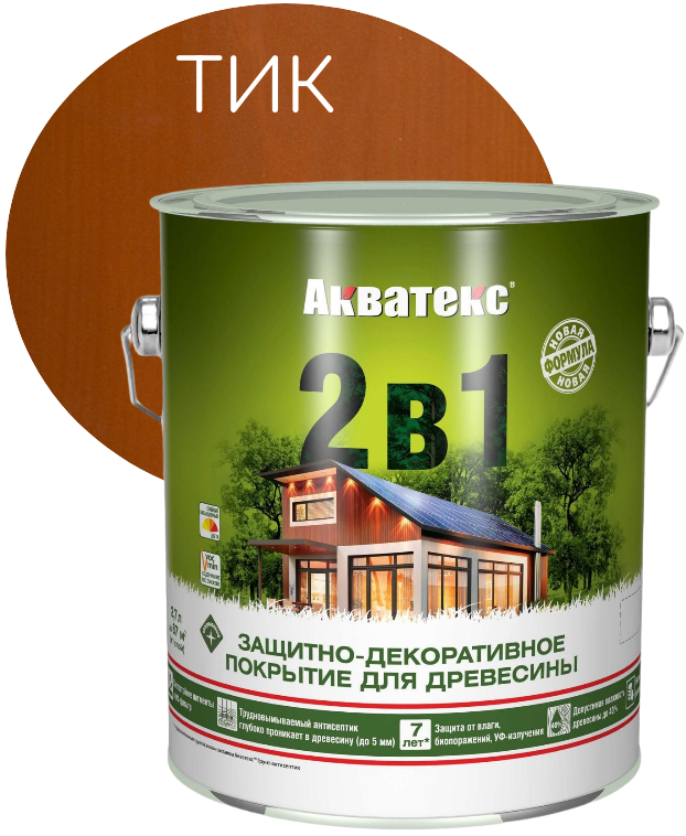 Защитно-декоративный антисептик Акватекс 2 в 1 предназначен для защиты древесины от атмосферных воздействий, УФ-излучения и биопоражений, таких как гниение, плесень, грибки, древесная синева, а также от заражения деревопоражающими насекомыми