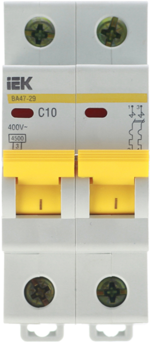 Автоматический выключатель IEK ВА 47-29 4,5кА 2-полюсный 10А(С10) предназначен для защиты распределительных и групповых цепей с различной нагрузкой.