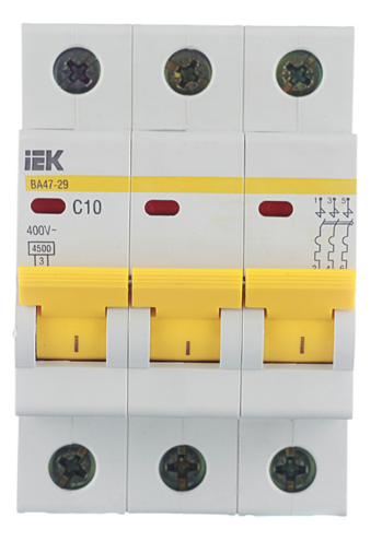 Меняли электрику на нашем складе, поставили Автомат ИЭК ВА 47-29 4,5кА 3-пол 10 А(С10) - работает как часы, надежно защищает от коротких замыканий