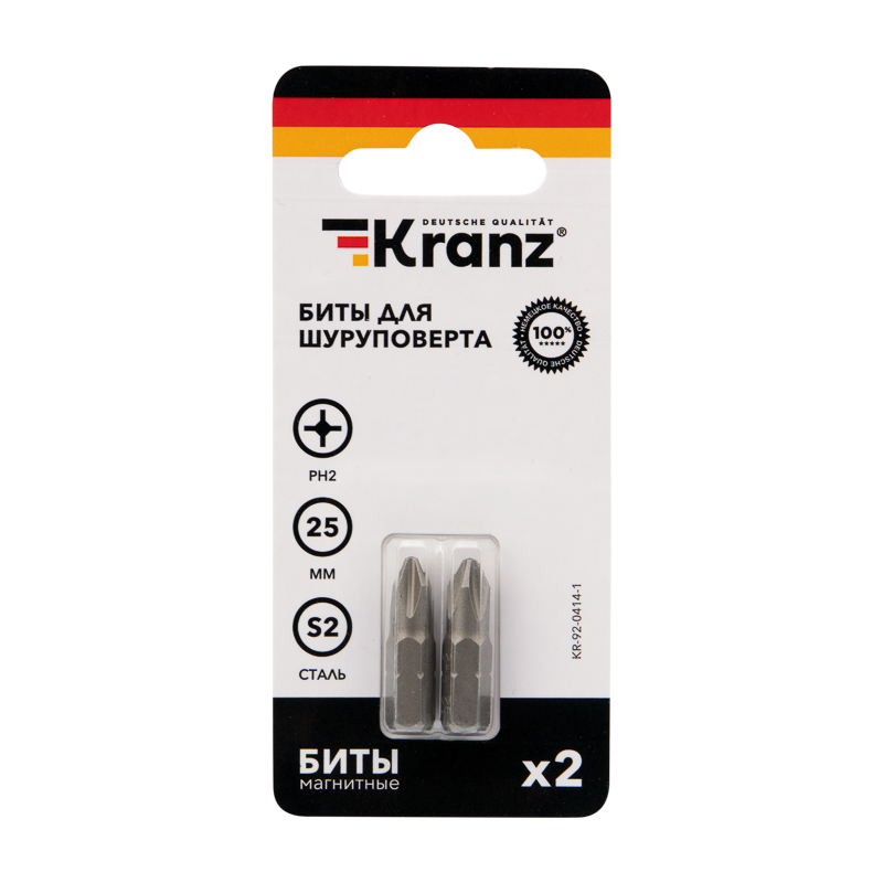 Бита крестообразная Kranz PH2 х 25мм (2шт/уп)