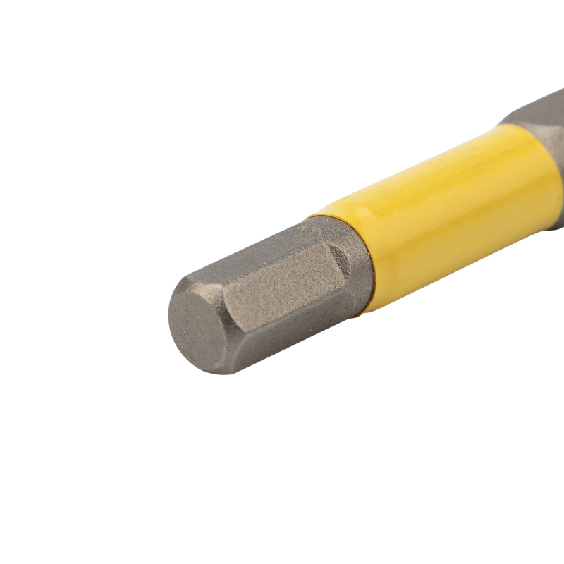 Изготовлена из легированной высокопрочной стали S2, что дает повышенную устойчивость к изломам и деформации в наиболее нагружаемых точках касания. Размер наконечника HEX-5 подходит для работы со шлицами с резьбовым диаметром 5 мм. Намагниченный наконечник облегчает крепление и фиксацию крепежа на бите. Шестигранный хвостовик надежно фиксирует биту в патроне инструмента и не дает ей проворачиваться.