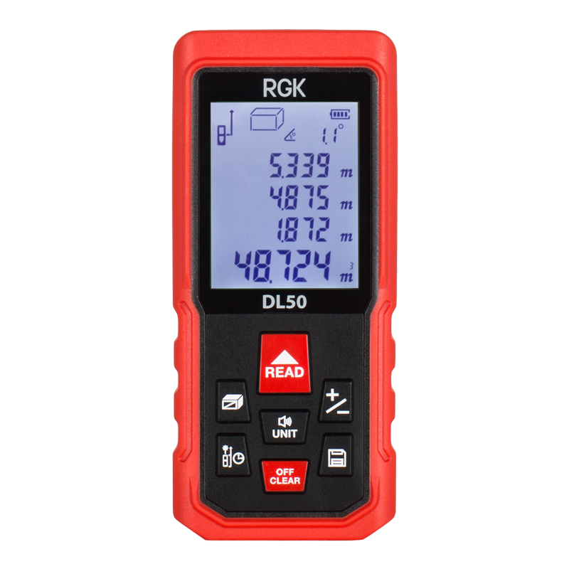 Лазерный дальномер RGK DL50 измеряет расстояния до 50 метров c точностью ±2 мм и оснащен угломером. Ключевая особенность прибора - опция "помощник маляра", которая поможет быстро вычислить сумму площадей стен помещения. Таким образом, можно точно рассчитать необходимый объем краски, штукатурки и других материалов.