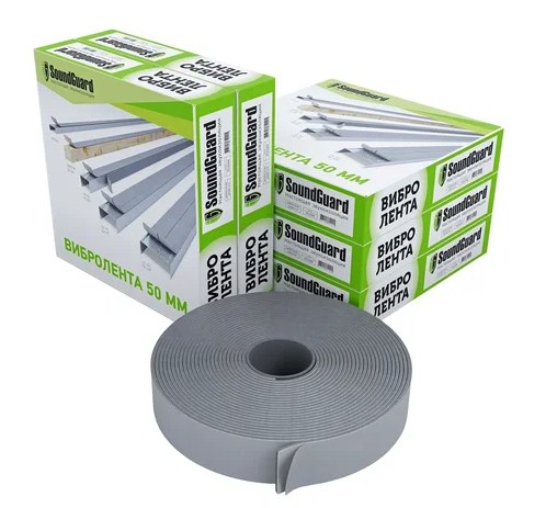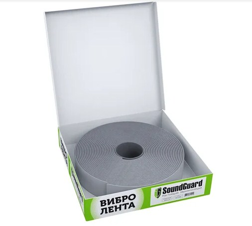 Каучуковая звукоизоляционная самоклеящаяся лента. Плотная, прочная, без запаха, клеится быстро,не отслаивается, с ней профиль не звенит. Теперь покупаю всегда только SoundGuard Band Rubber