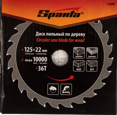 Диск пильный по дереву Sparta 22 х 125 мм 36 зубцов