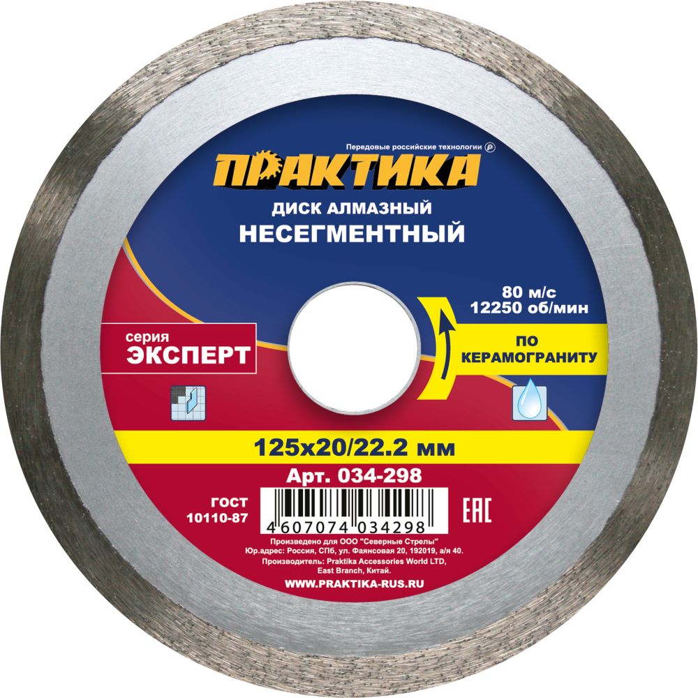 Диск алмазный несегментный по керамограниту Практика 125 мм