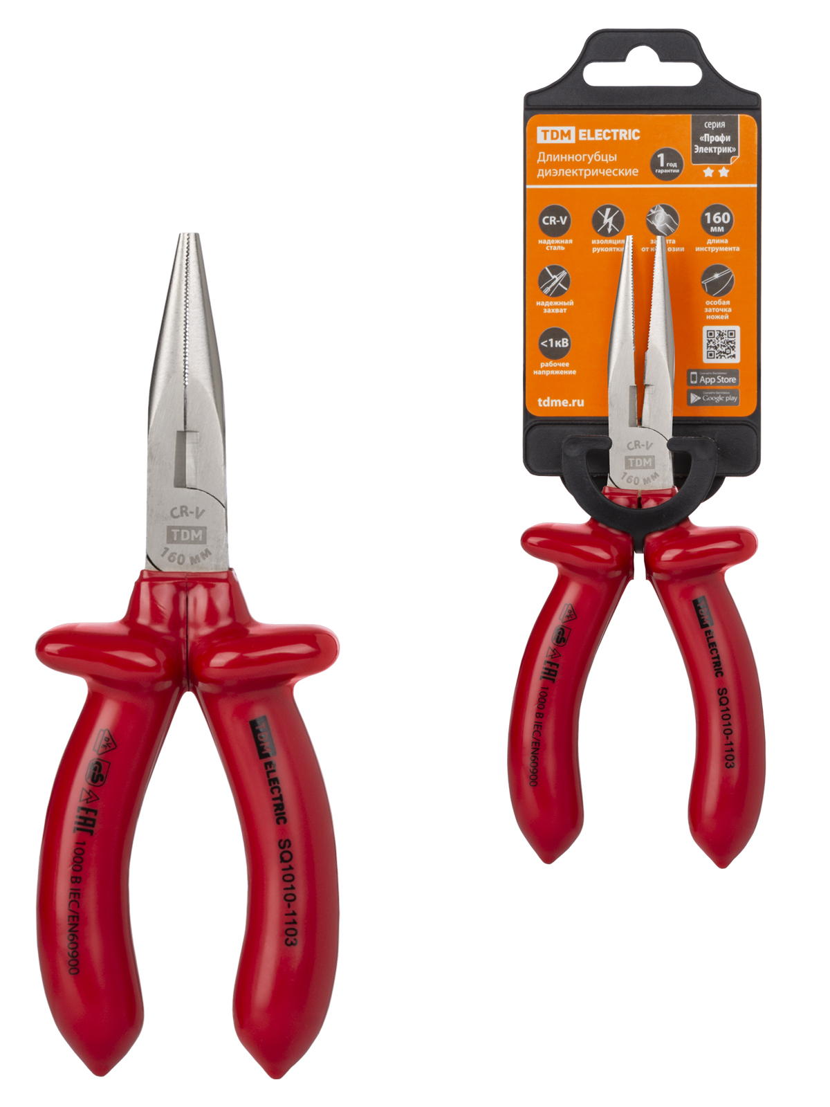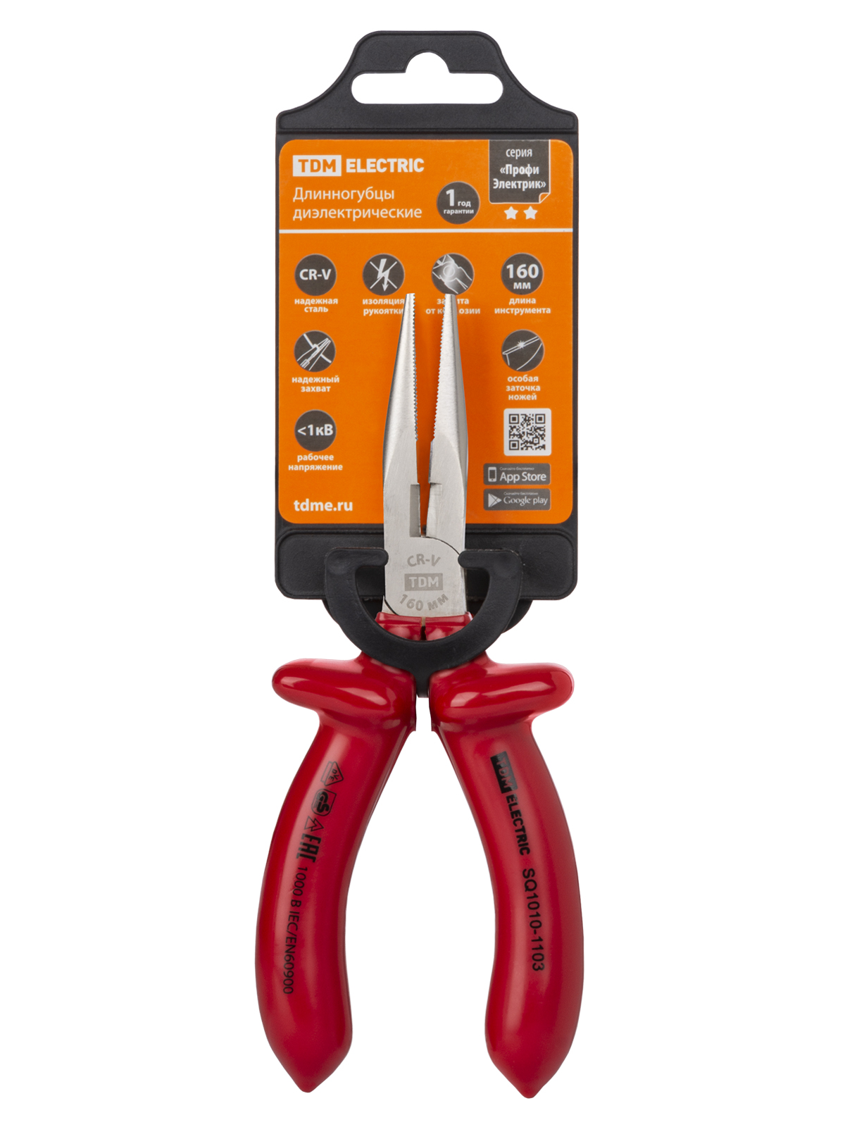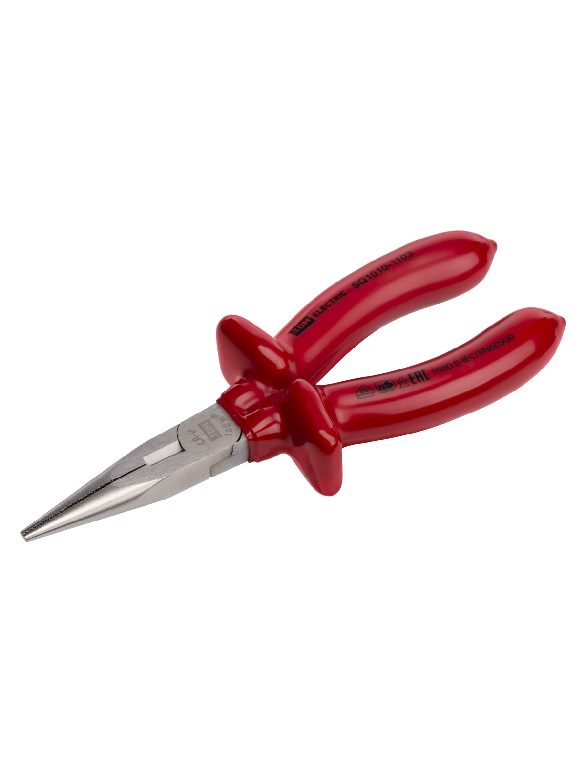 Длинногубцы предназначены для выполнения различных электромонтажных, слесарных, пуско-наладочных и прочих работ, в том числе и под напряжением до 1000 В. Служат для закрепления и держания различных деталей. Металическая часть выполнена из хром-ванадиевой стали CR-V с никелированным покрытием, рукоятки инструмента покрыты двухслойной диэлектрической пластизолью. Диэлектрические свойства изоляционного материала соответствуют стандарту VDE. Режущие кромки закалены токами высокой частоты.