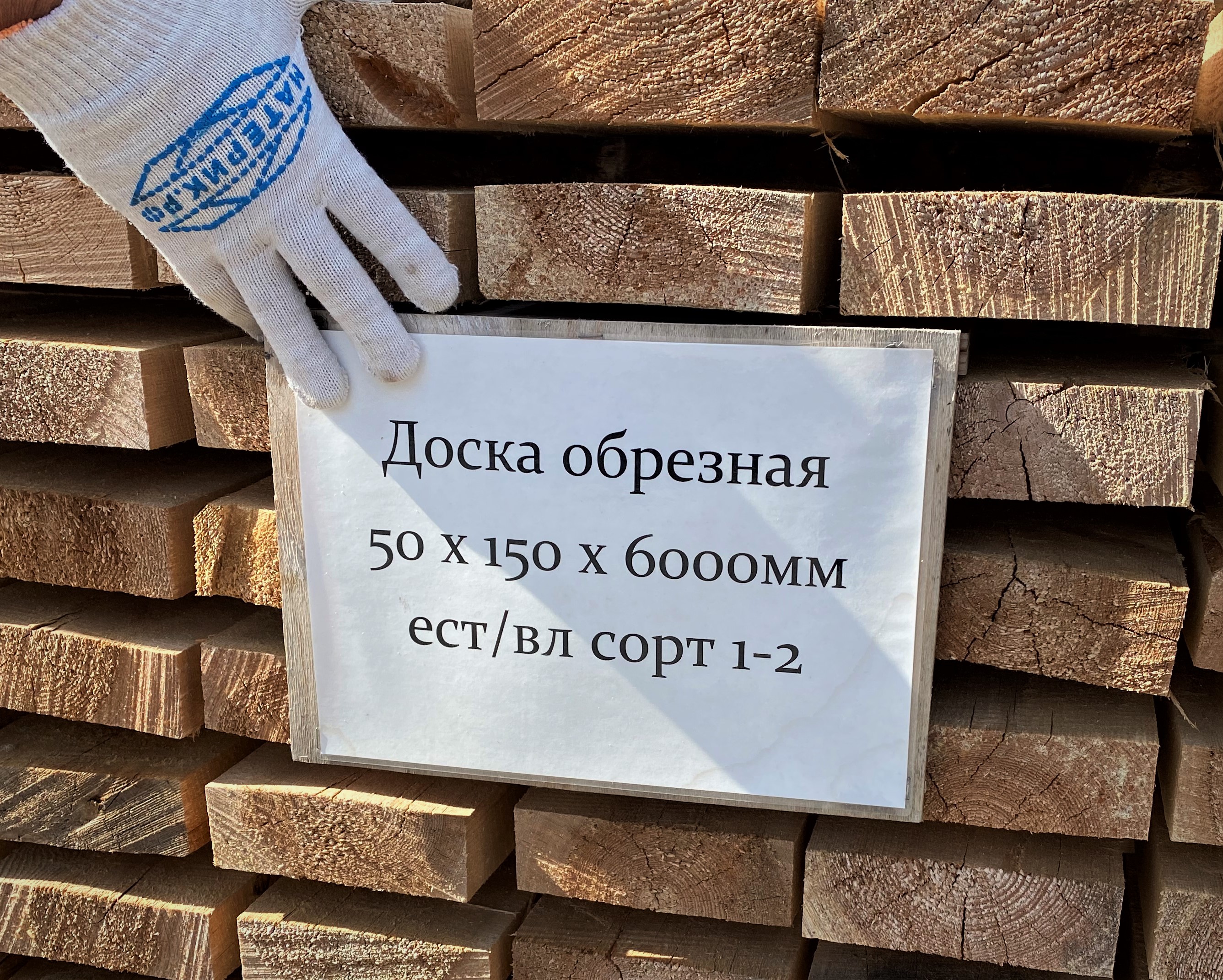 Доска обрезная 50 х 150 х 6000мм ест/вл Первый сорт