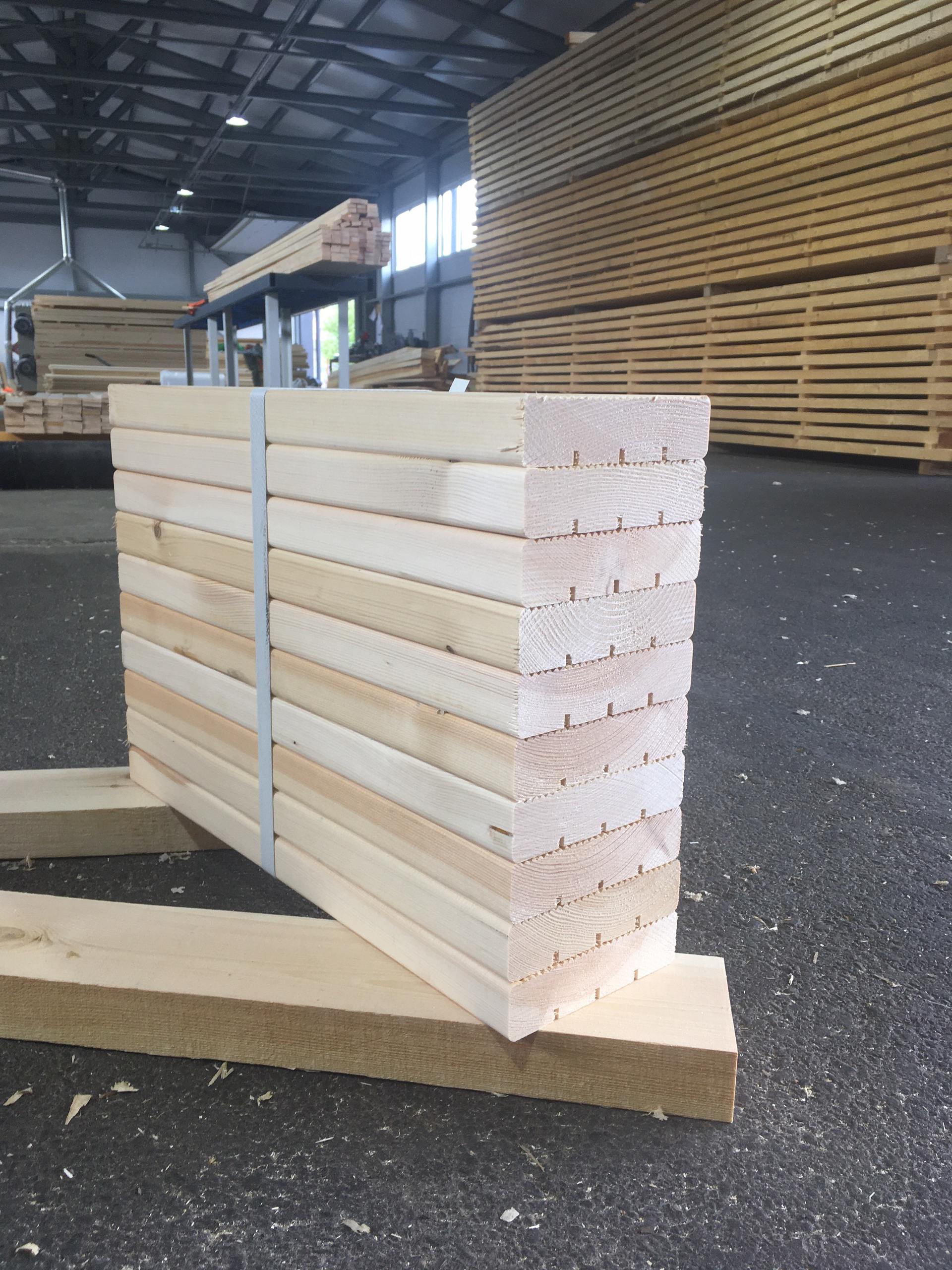 - Камерная сушка — влажность материала не превышает 18%, что сводит к минимуму риск усадки после укладки.