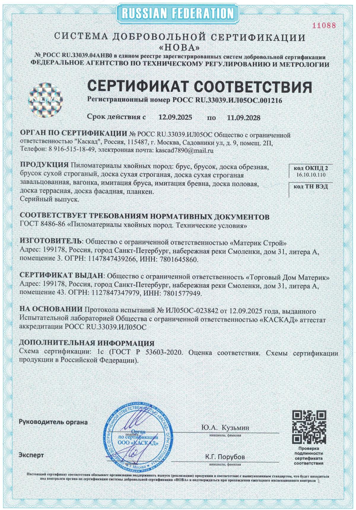 Все пиломатериалы соответствуют ГОСТ 8486-86 и фирменному стандарту качества ТД «Материк». Компания прошла сертификацию ISO 9001:2015, что подтверждает надежность и стабильность продукции.