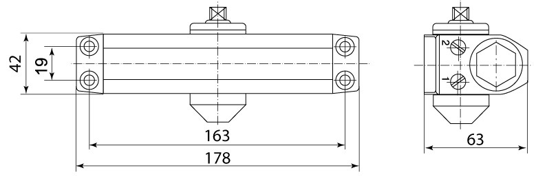 Дверной доводчик предназначен для легких дверей, таких как внутренние двери в офисах, торговых и технических помещениях.