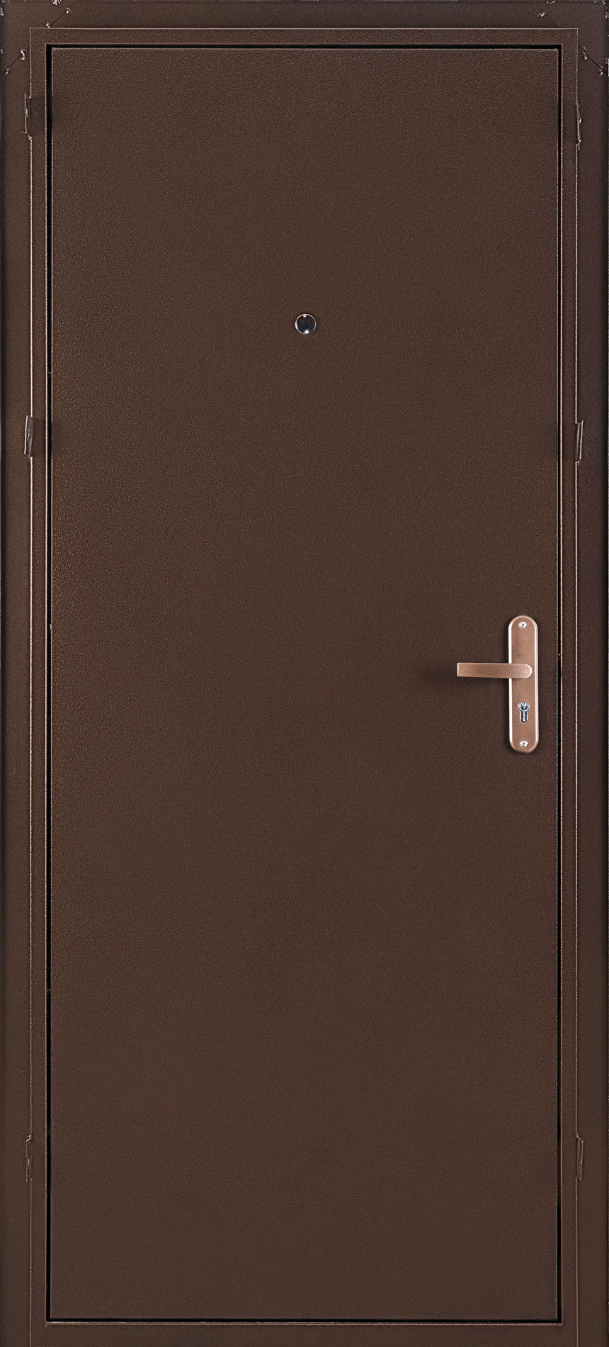 Данная модель оснащена цилиндровым замком Просам 3B4-31/55 второго класса и дверным глазком круглой формы. Ручка двери установлена на планке вместе со замком и окрашена в стильный медный цвет. По необходимости, эту дверь можно дополнительно оснастить вторым замком.