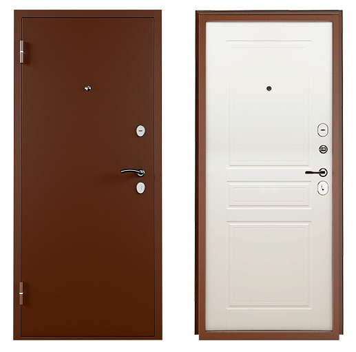 Внутренний наполнитель из пенополистирола обеспечивает теплоизоляцию и звукозащиту. Дверь покрыта износостойкой полимерно-порошковой краской и имеет два контура уплотнения для защиты от сквозняков и шума. Внутренняя сторона выполнена в виде МДФ панели