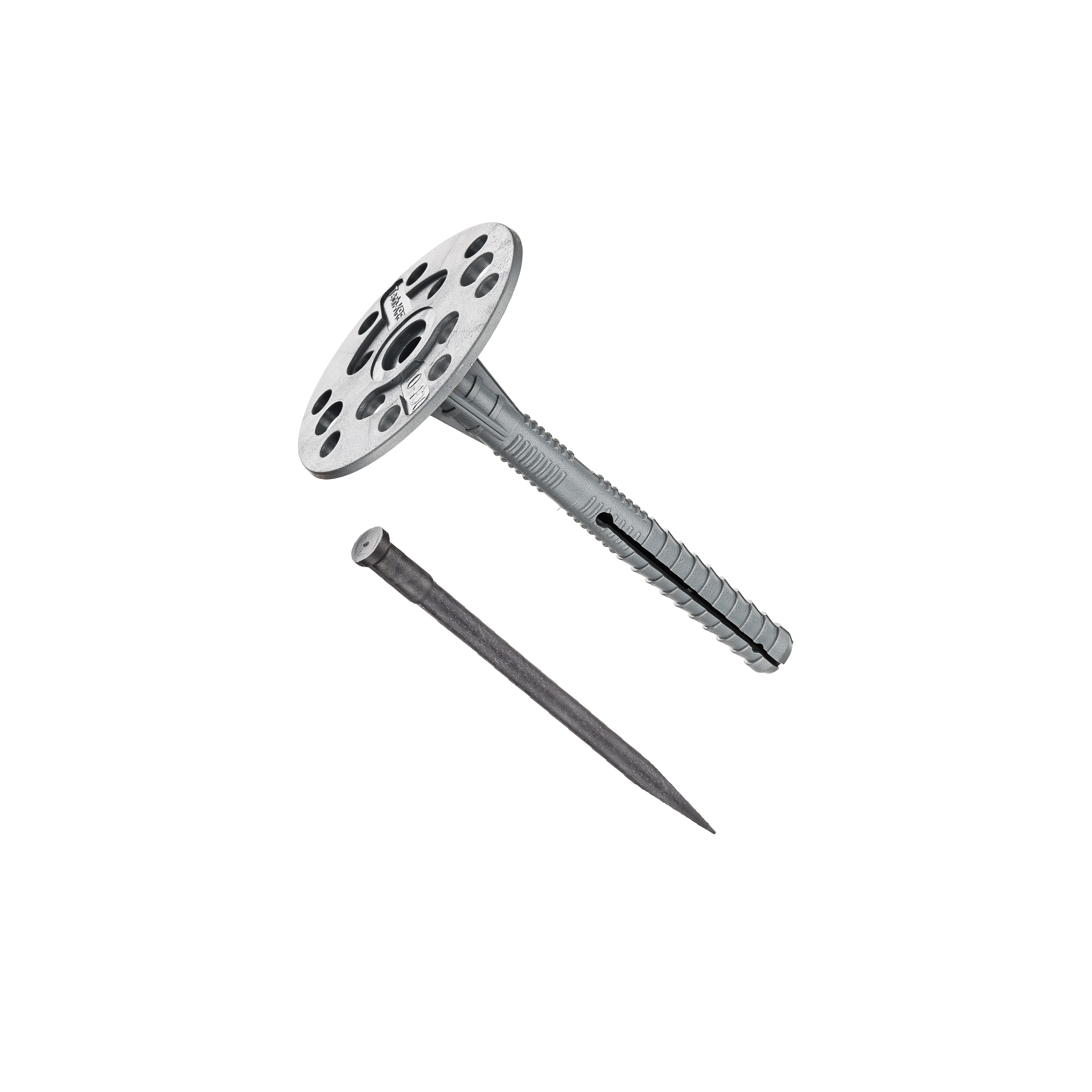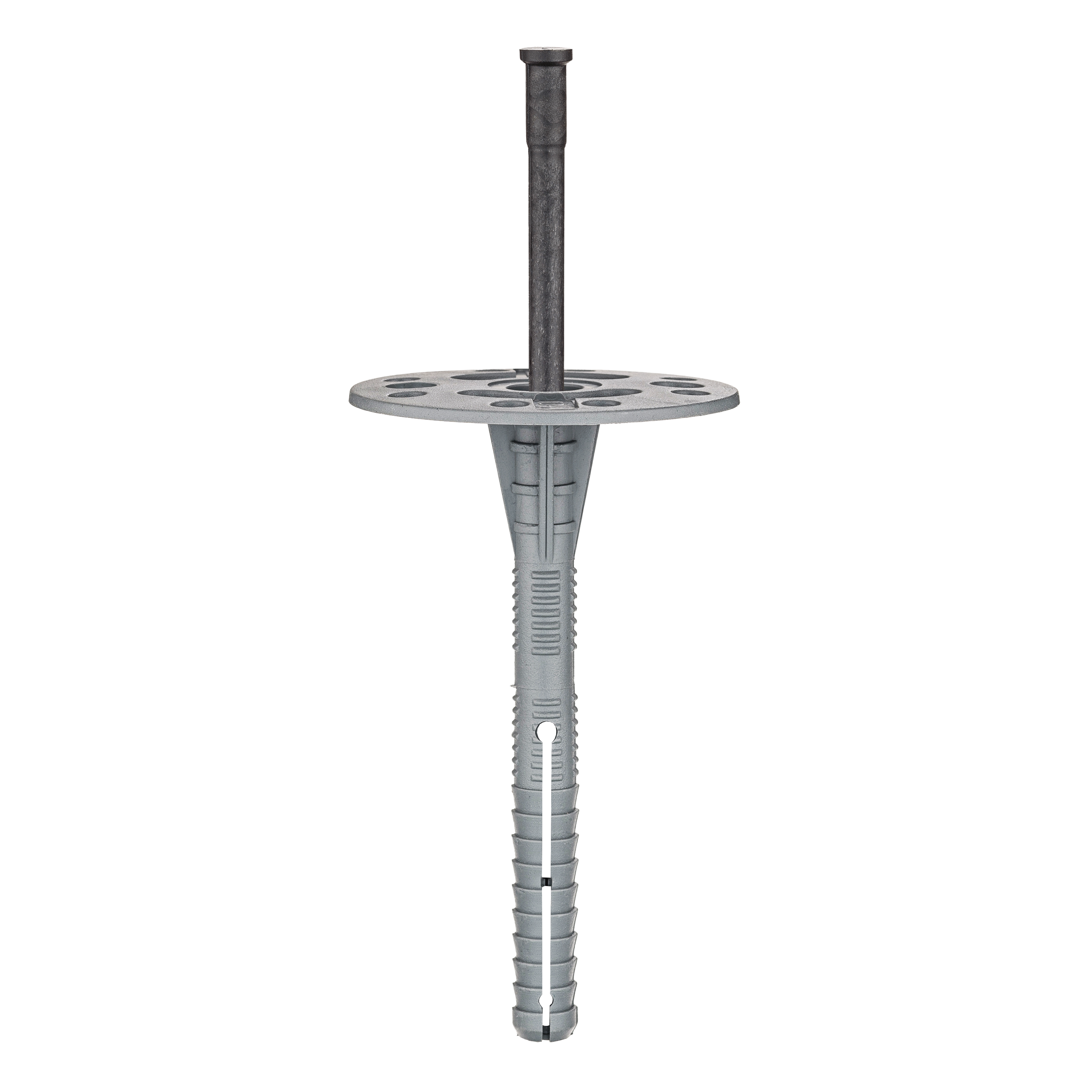 Дюбель для теплоизоляции 10х100мм с пластиковым гвоздем применяется для крепления легких теплоизоляционных материалов максимальной толщиной 60мм к фасадам зданий.