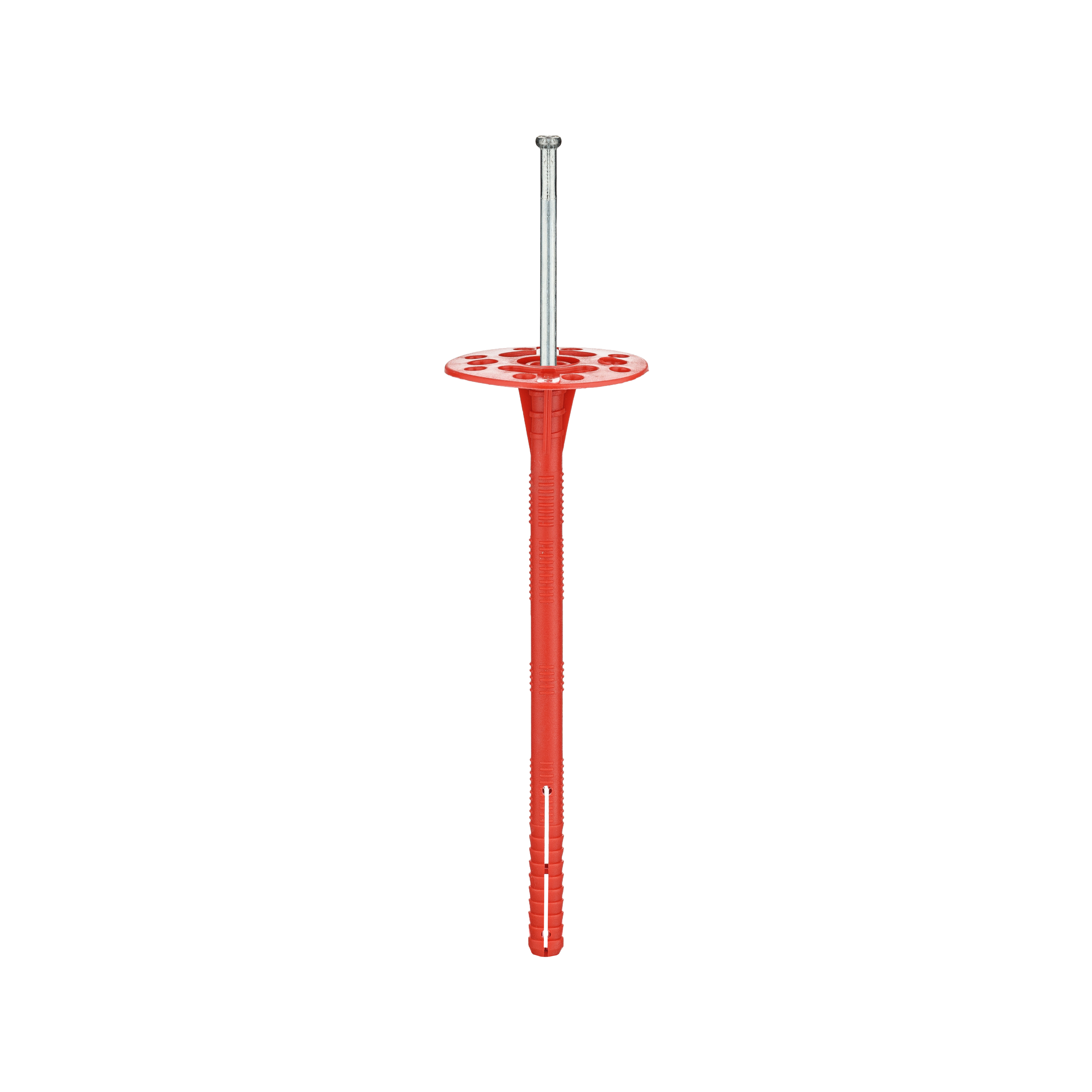 Дюбель для теплоизоляции 10х180мм с металлическим гвоздем применяется для крепления теплоизоляционных материалов максимальной толщиной 130мм к фасадам зданий.