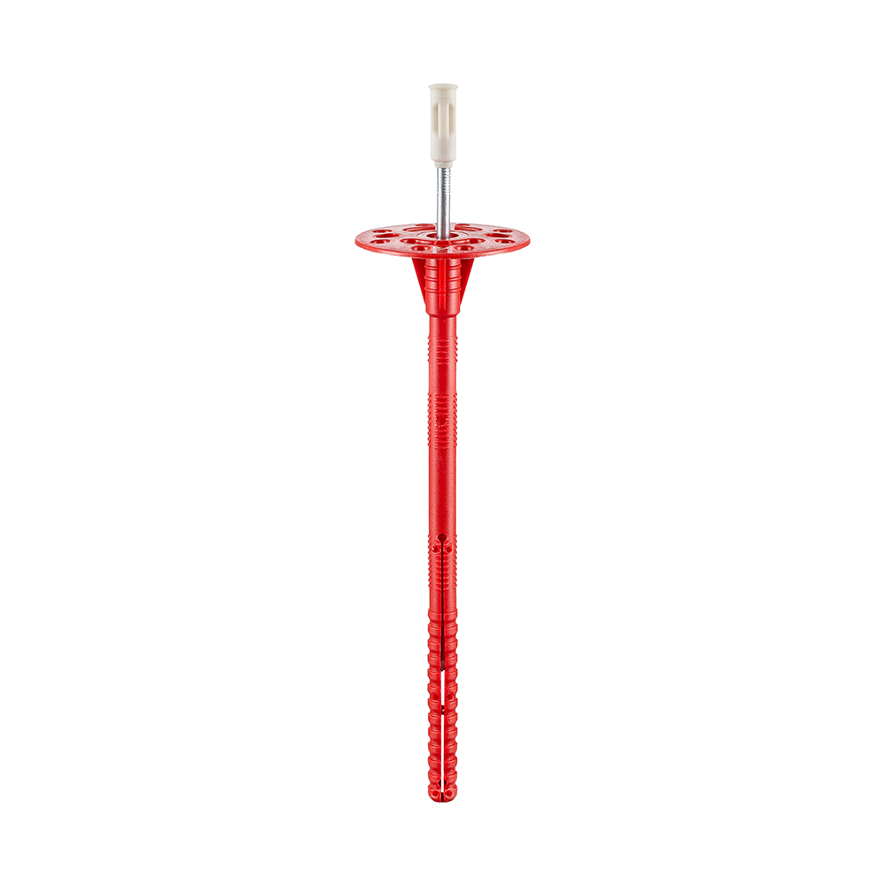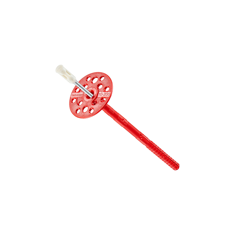 Дюбель для теплоизоляции 10х200мм с металлическим гвоздем с термоголовкой применяется для крепления теплоизоляционных материалов максимальной толщиной 150мм к фасадам зданий.