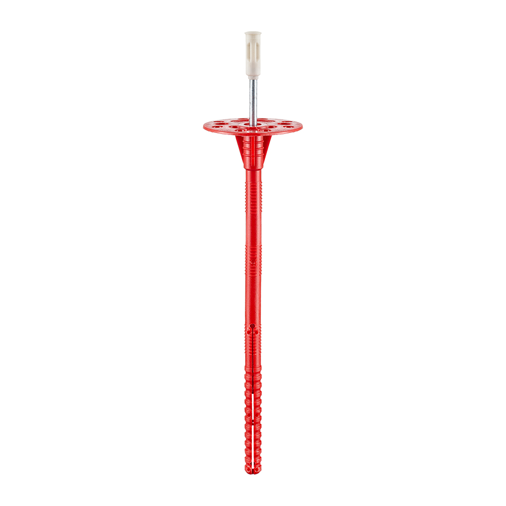 Дюбель для теплоизоляции 10х220мм с металлическим гвоздем с термоголовкой применяется для крепления теплоизоляционных материалов максимальной толщиной 160мм к фасадам зданий.