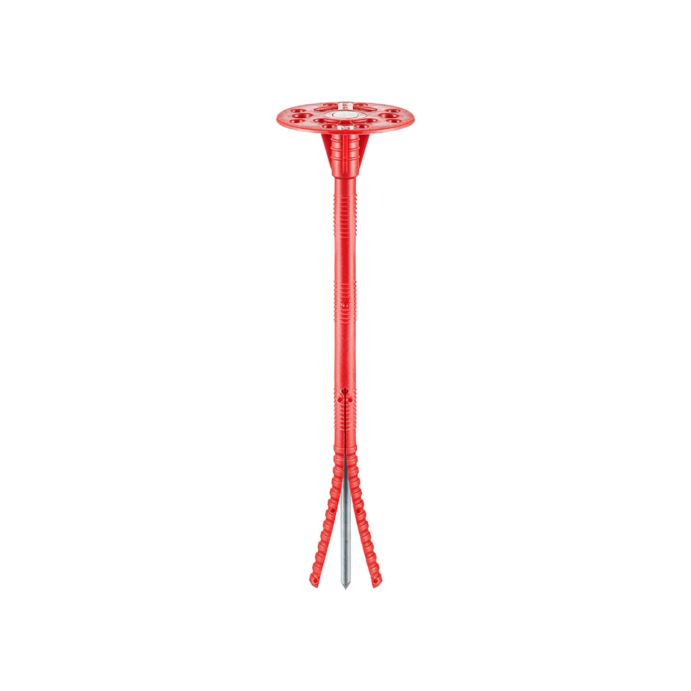 - Металлический оцинкованный гвоздь с термоголовкой, вбивается в распорный элемент, чтобы обеспечить плотную фиксацию. Пластиковый колпачок защищает от коррозии и предотвращает потерю тепла.