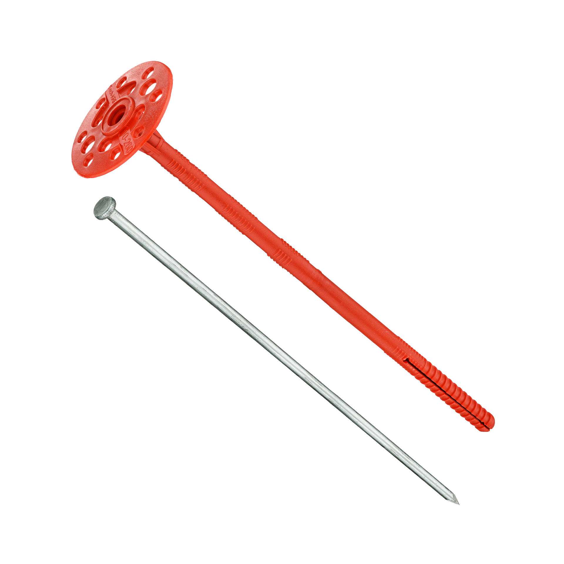 Дюбель для теплоизоляции 10х260мм с металлическим гвоздем применяется для крепления теплоизоляционных материалов максимальной толщиной 200мм к фасадам зданий.