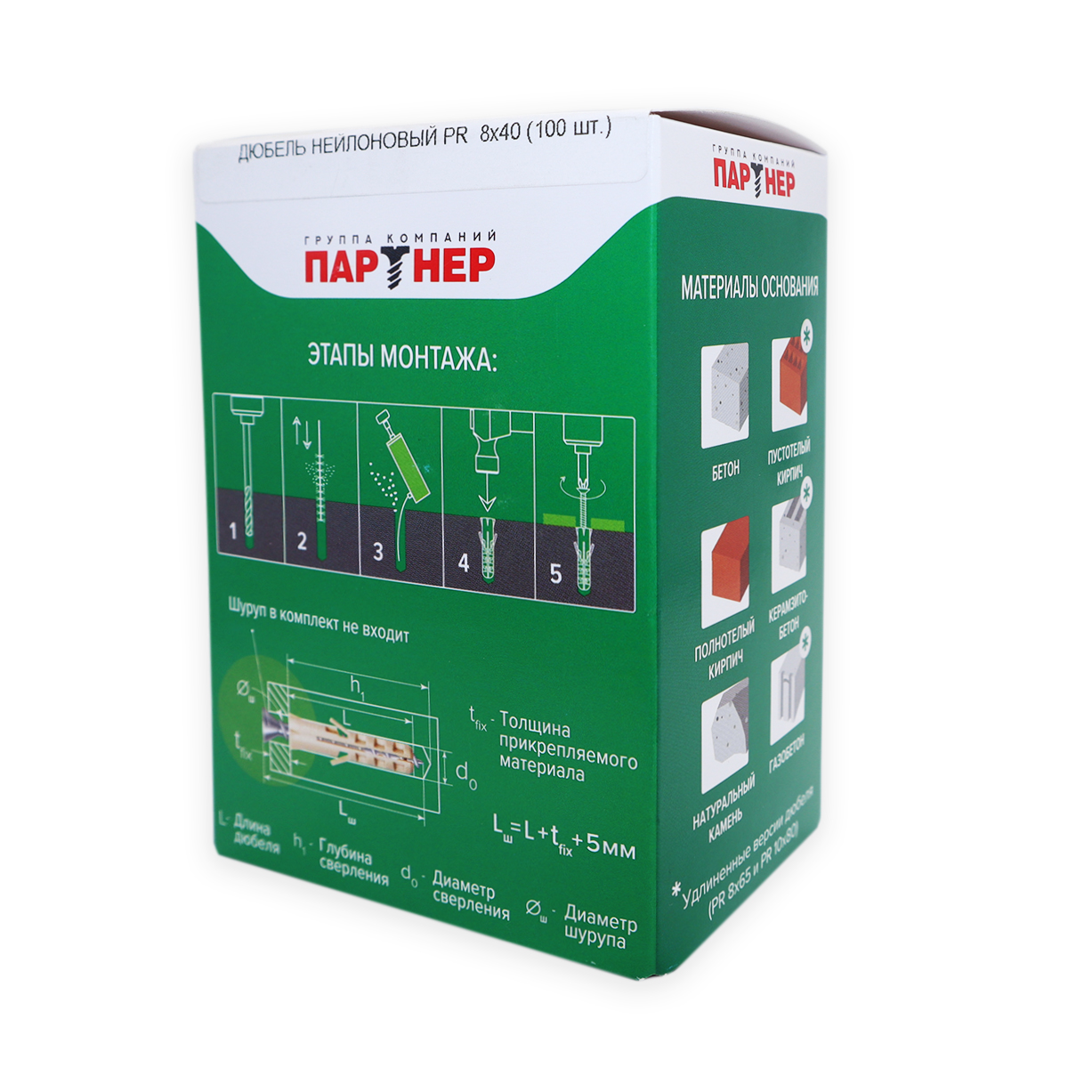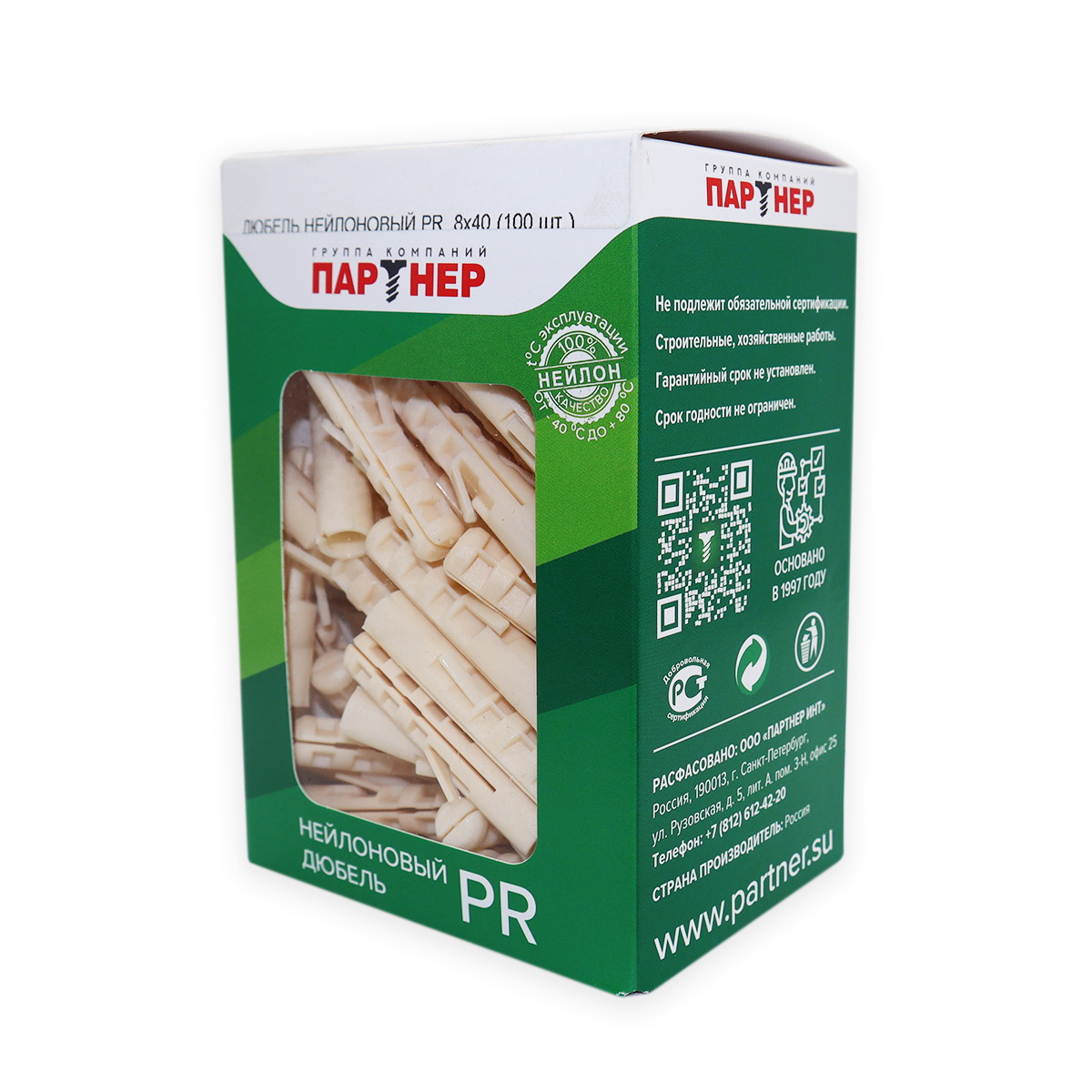 Приобрел дюбель нейлоновый PR8 8 х 40 100шт/уп для крепления пластиковых плинтусов. По качеству уступает сормат, но для легких материалов норм