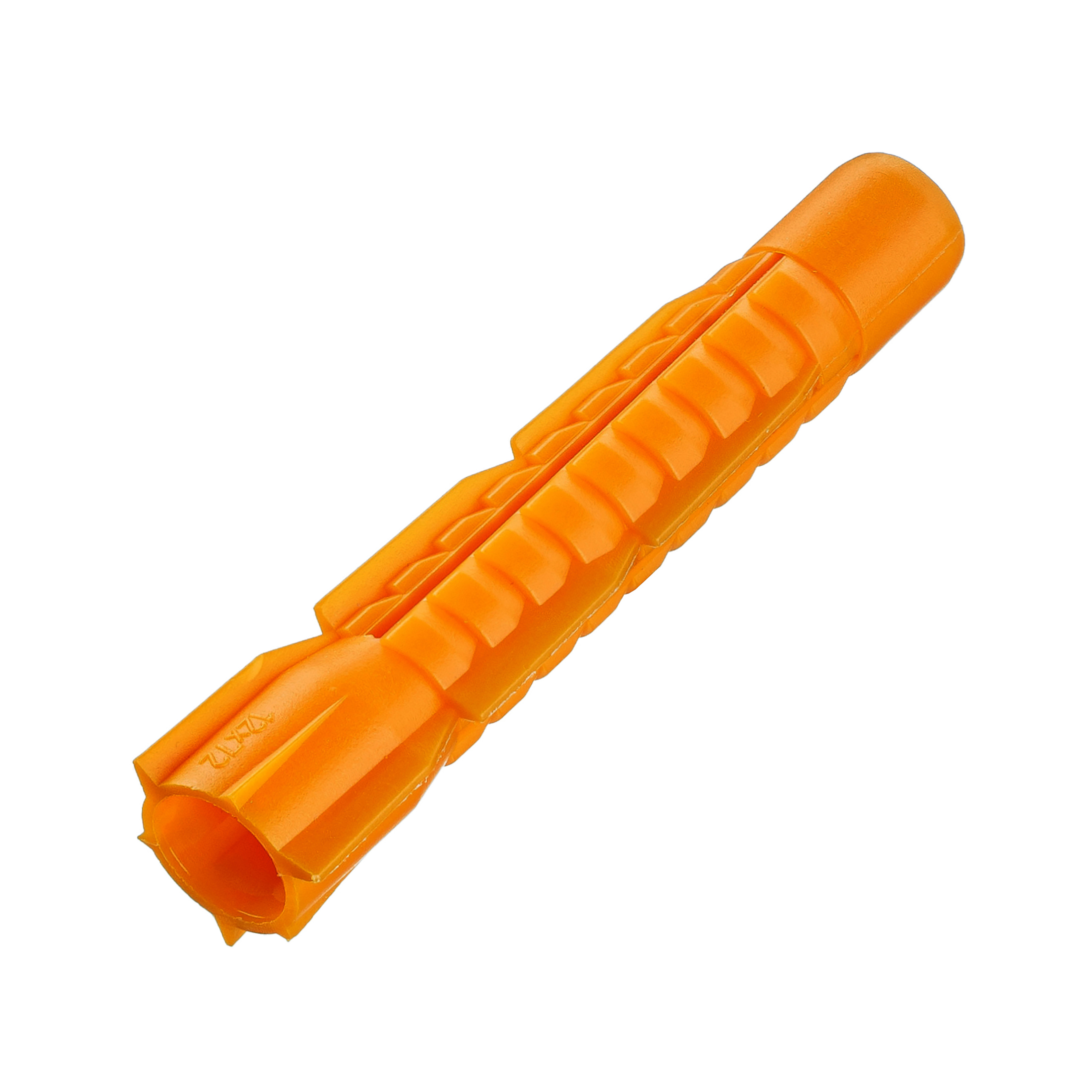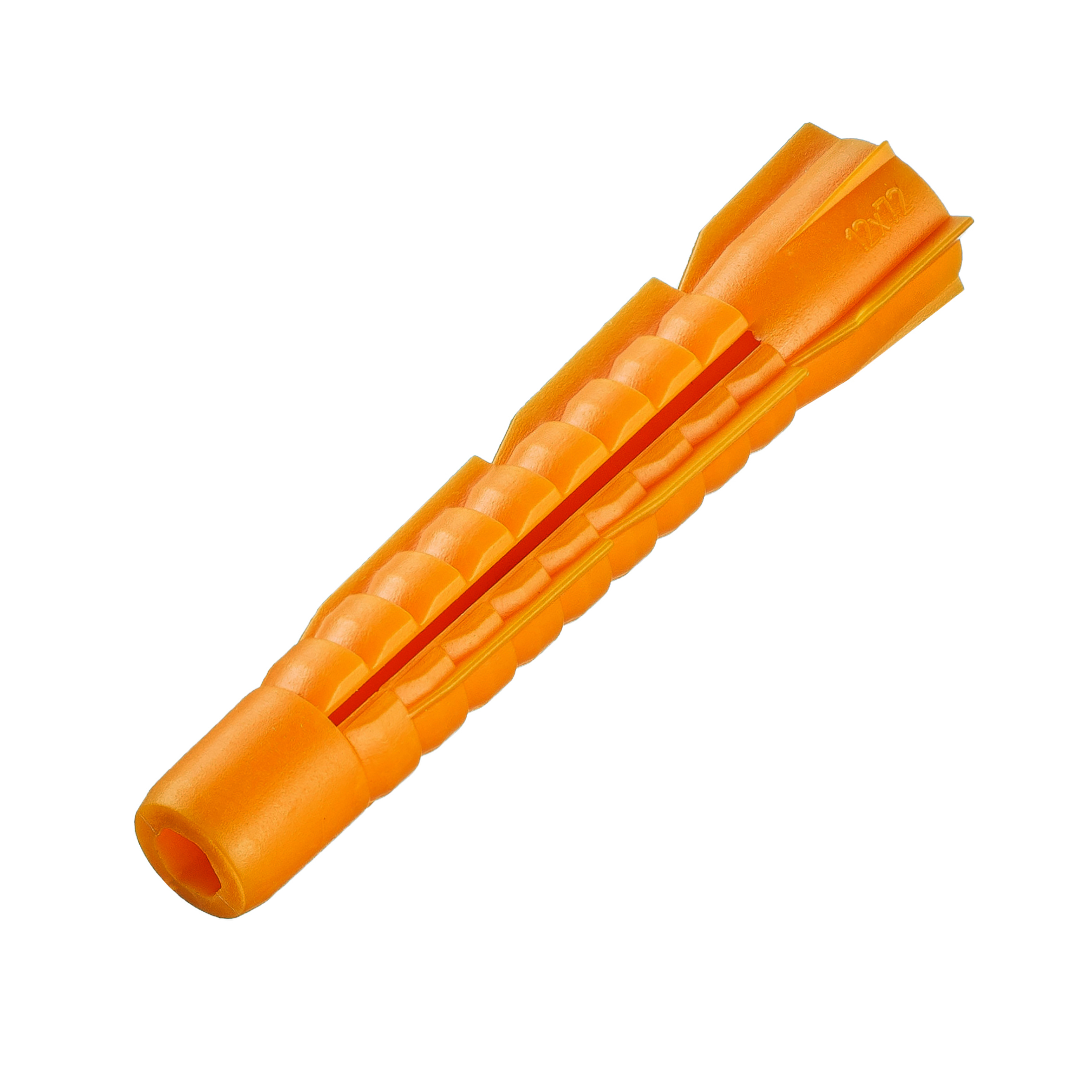 Универсальный дюбель применяется для закрепления и монтажа различных деталей и изделий в различные типы сплошных и пустотелых оснований. Изготовлен из полипропилена. Дюбель при закреплении в полнотелом материале (бетон, кирпич, природный камень) разжимается и входит в плотный контакт со стенками отверстия. При монтаже в пористые, пустотелые материалы (ячеистый бетон, пустотелый кирпич) и листовые материалы изделие сворачивается, выпучивается и фиксируется в основании. Дюбель используется совместно с универсальными саморезами. Устанавливается в предварительно просверленное отверстие.