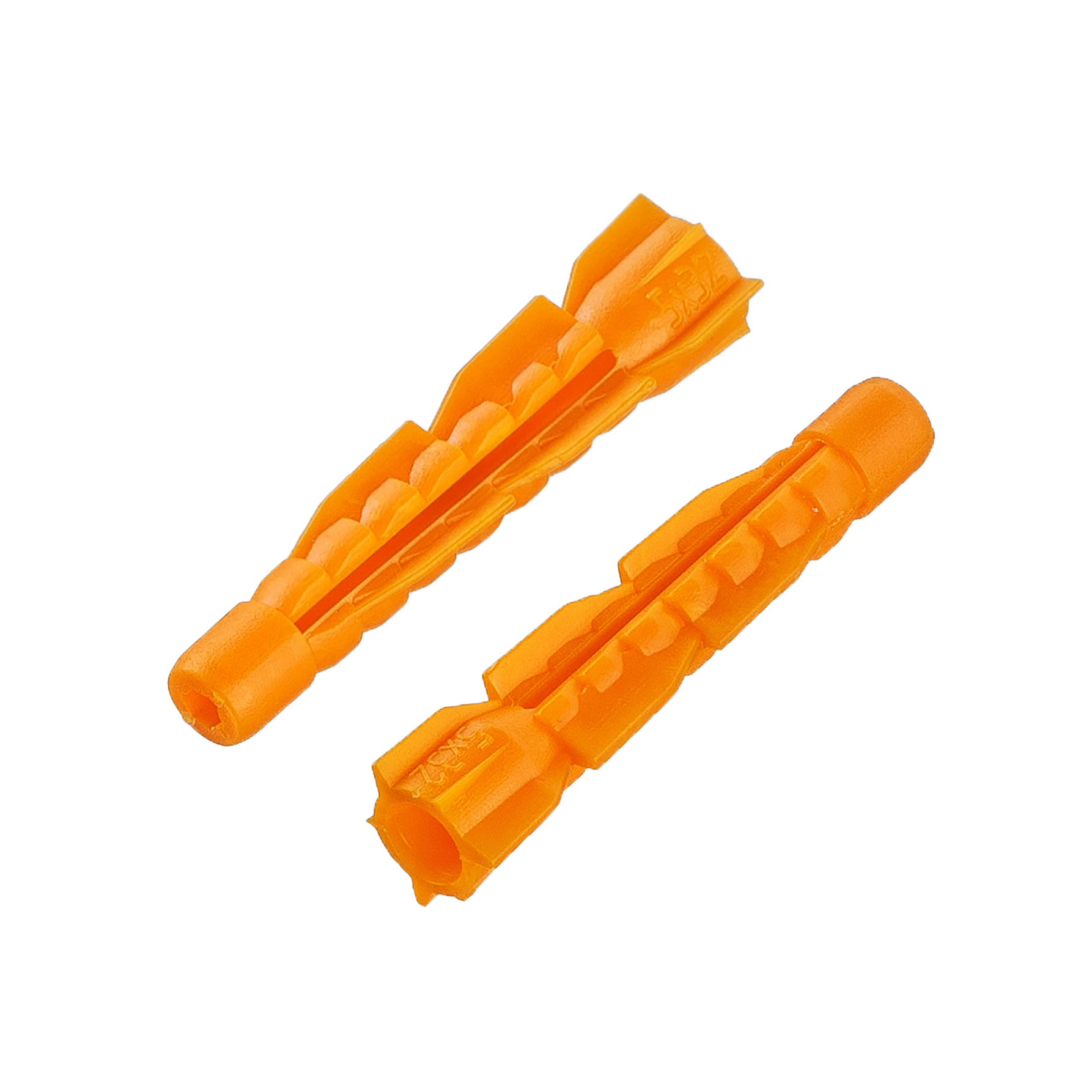 Универсальный дюбель применяется для закрепления и монтажа различных деталей и изделий в различные типы сплошных и пустотелых оснований. Изготовлен из полипропилена. Дюбель при закреплении в полнотелом материале (бетон, кирпич, природный камень) разжимается и входит в плотный контакт со стенками отверстия. При монтаже в пористые, пустотелые материалы (ячеистый бетон, пустотелый кирпич) и листовые материалы изделие сворачивается, выпучивается и фиксируется в основании. Дюбель используется совместно с универсальными саморезами. Устанавливается в предварительно просверленное отверстие.