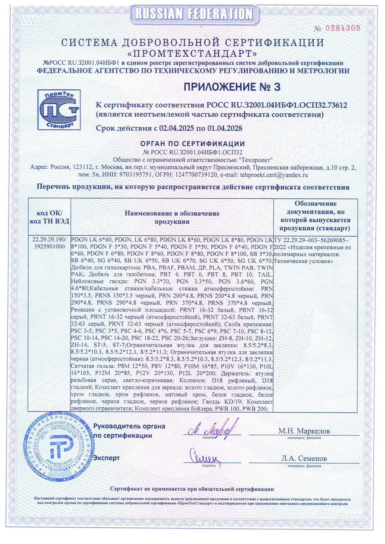 Имеет уникальную распорную зону, благодаря которой в качестве распорного элемента можно применять: шурупы, винты с метрической резьбой, гвозди с широким диапазоном типоразмеров.