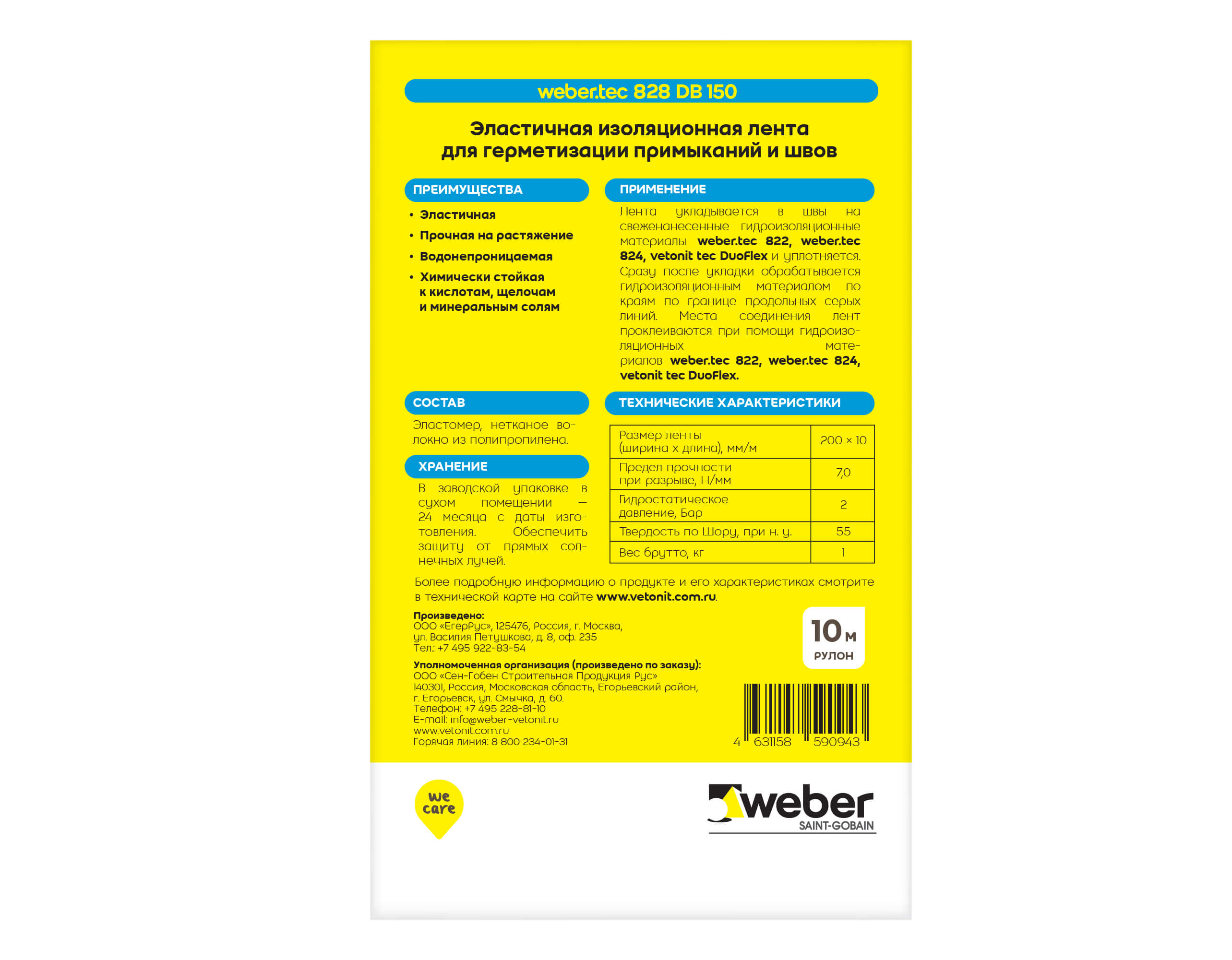 Эластичная изоляционная лента Вебер.тек 828 ДБ 75 - это ламинированная волокном лента из эластомера для герметизации вертикальных и горизонтальных температурных деформационных швов в помещениях и снаружи зданий,