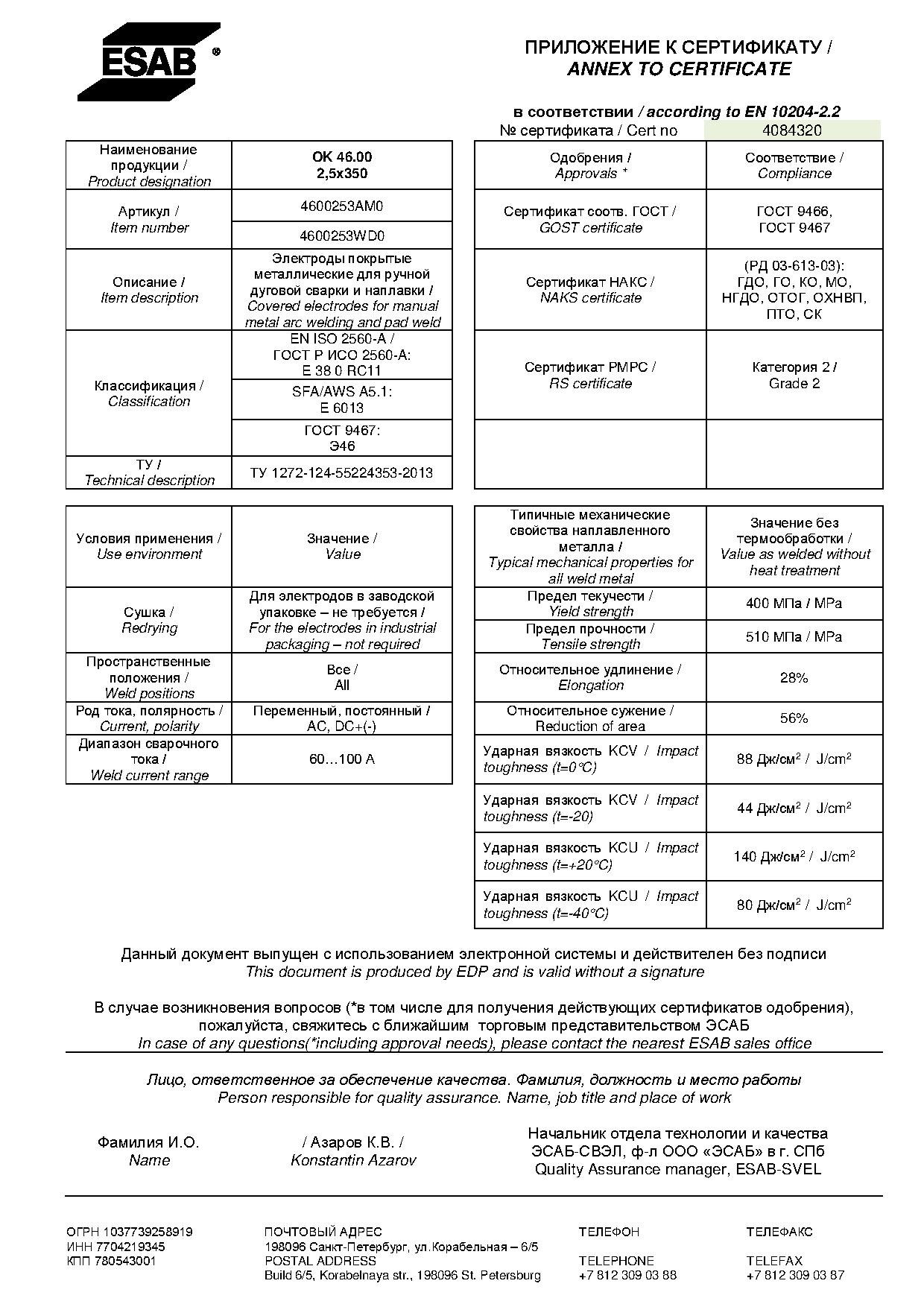 Электроды общетехнического назначения ESAB УОНИ-13/55 используют для сварки особо ответственных изделий из конструкционных низкоуглеродистых и низколегированных, во всех пространственных положениях, кроме вертикали на спуск.