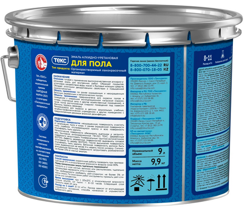 Алкидно-уретановая эмаль для окраски бетонных, деревянных и металлических полов в помещениях с высокой эксплуатационной нагрузкой (гаражи, склады, спортивные залы и другие хозяйственные помещения), а также полов расположенных снаружи помещений под навесом (балконы, террасы, веранды).