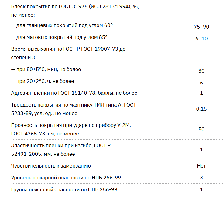 Время сушки «на отлип» при температуре +20 °С — не менее 40 минут. Время полного высыхания при температуре +20 °С —не менее 5 часов.