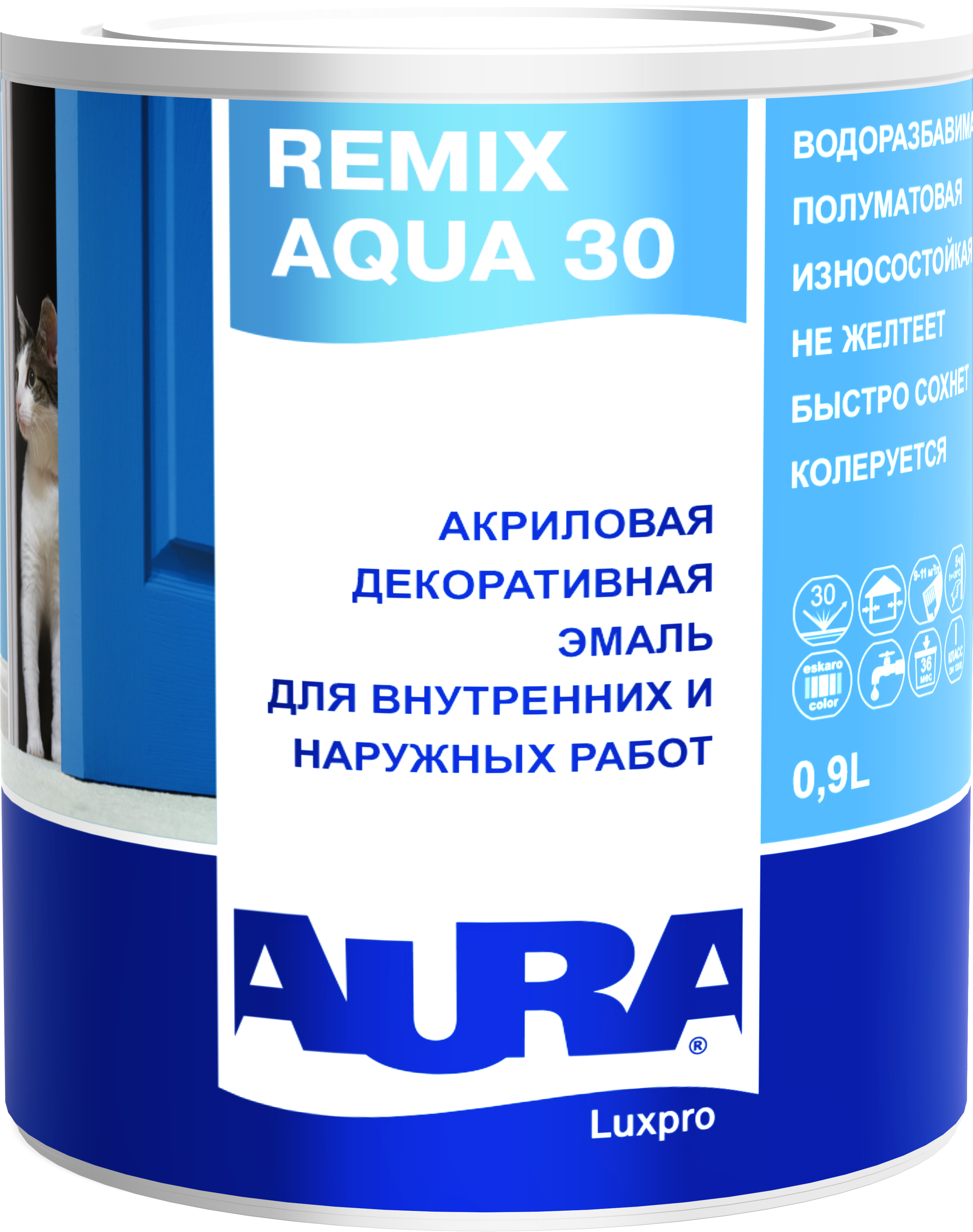 Купил в Материке на якорной эмаль AURA Luxpro REMIX AQUA 30. Быстро заколеровали в нужный мне цвет. Покрасил данной эмалью оконные рамы.Эмаль легла ровно, цвет белый без примесей. Очень удобна в использовании.