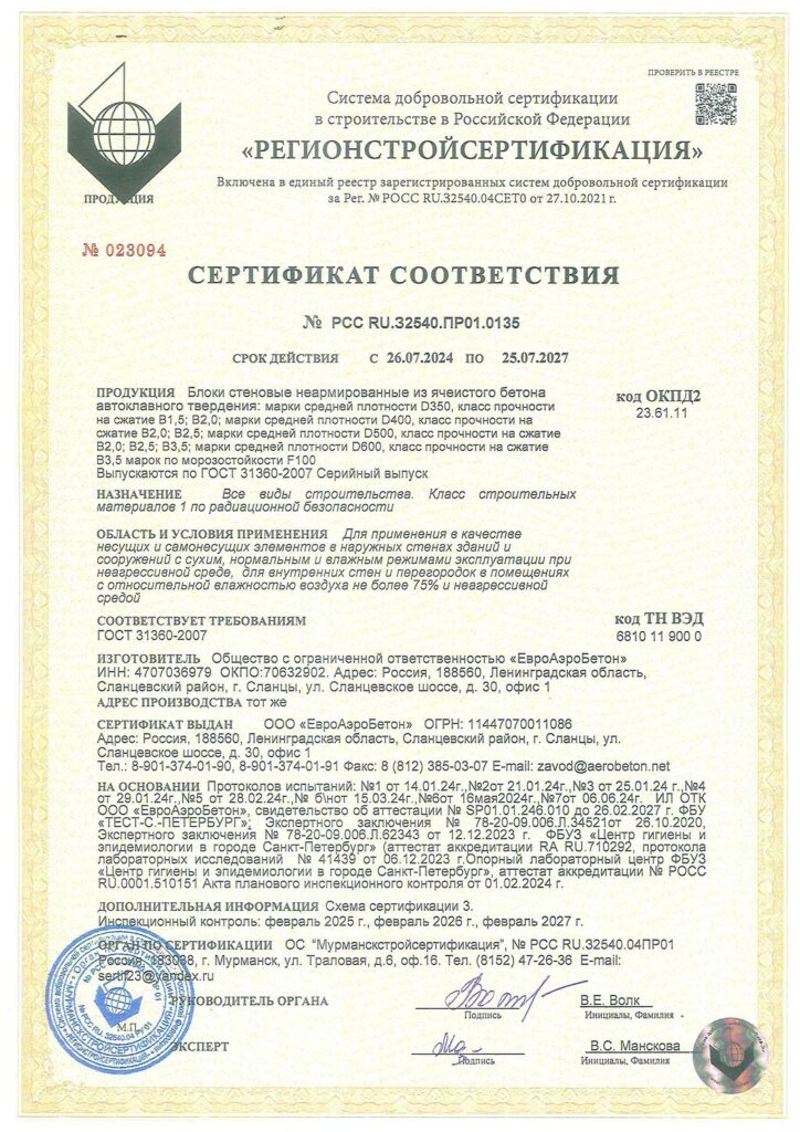 Газобетон ЕвроАэроБетон - ячеистый бетон автоклавного происхождения.