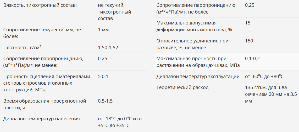 • Прочность сцепления с материалами стеновых проемов и оконных конструкций ? 0,1 МПа