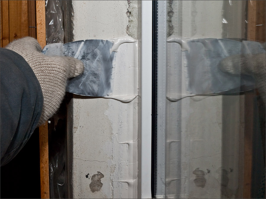 Толщина слоя нанесения герметика должна составлять от 3 до 4,5 мм, ширина полосы контакта герметика с поверхностями проемов и коробок блоков должна быть не менее 3 мм на каждую сторону