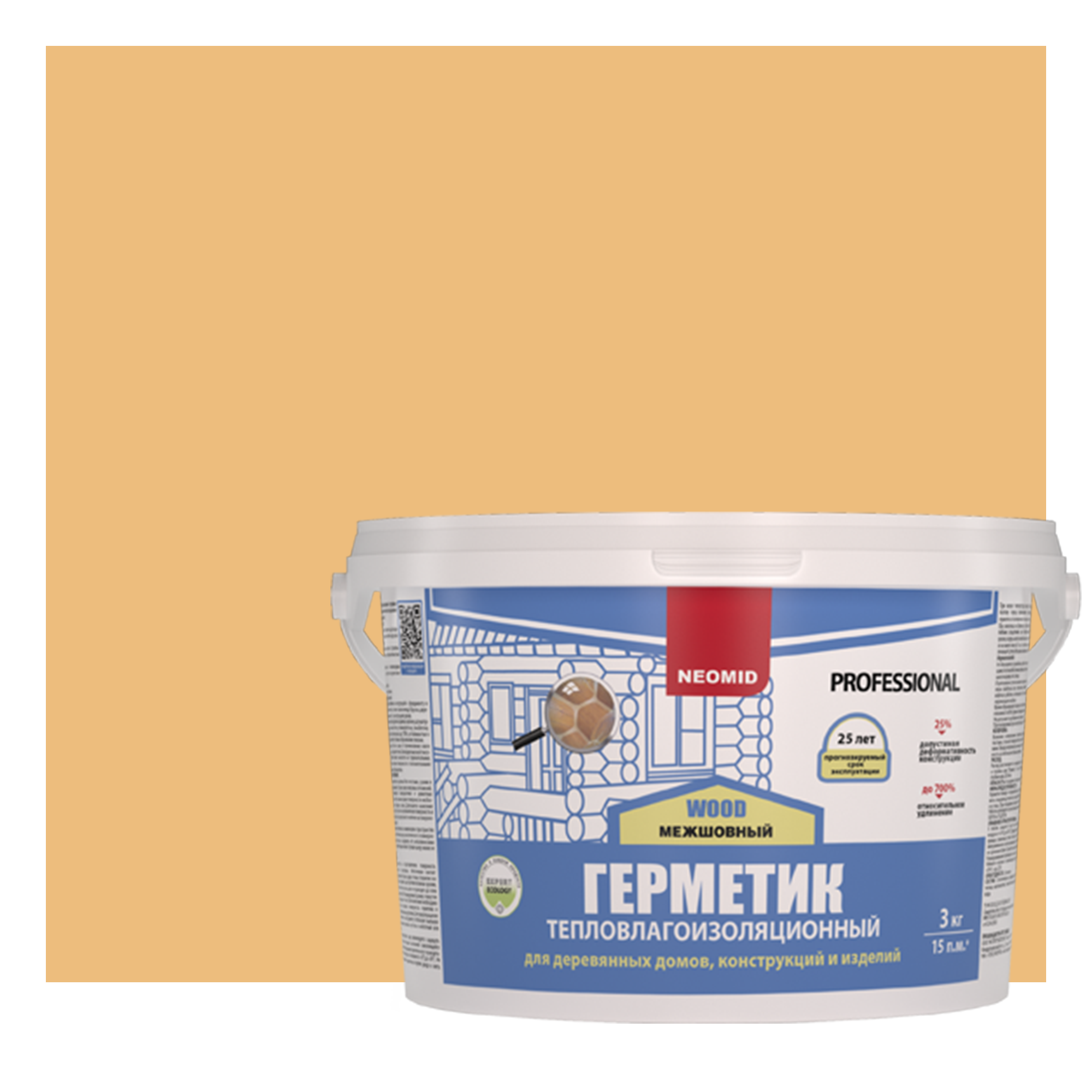 Герметик Neomid Wood Professional межшовный - предназначен для деревянных поверхностей, для заделки и долговременной герметизации.