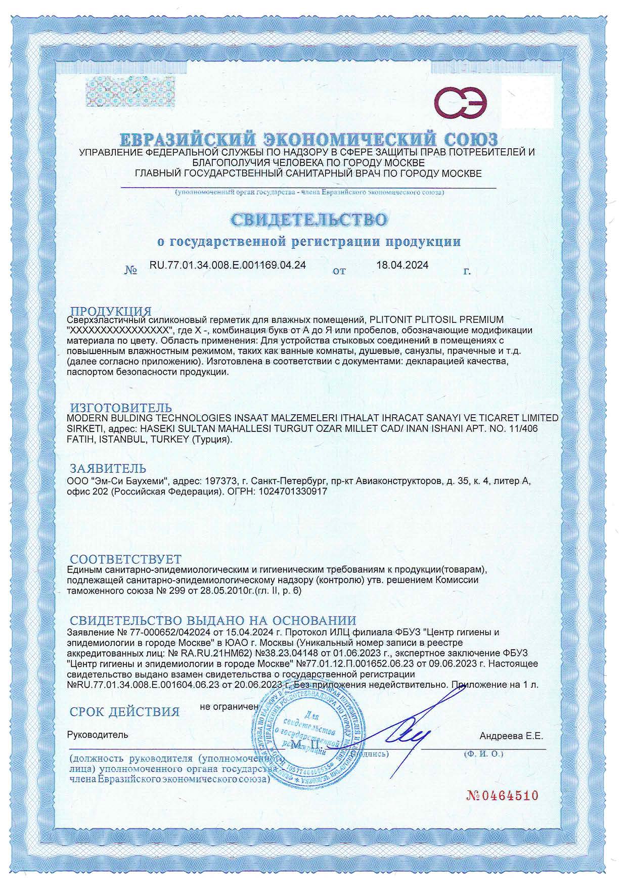 PLITOSIL Premium - высокоэластичный силиконовый санитарный герметик кислотного отверждения для влажных помещений