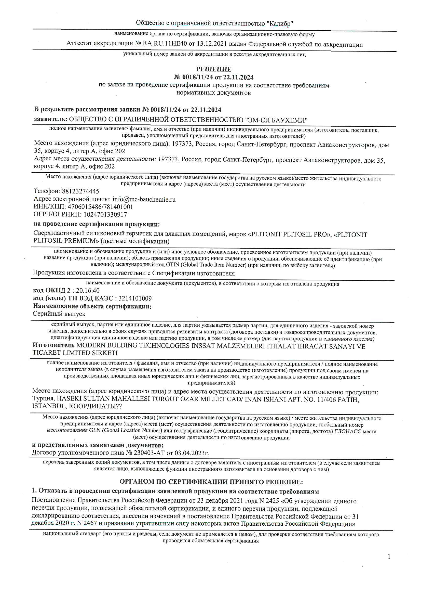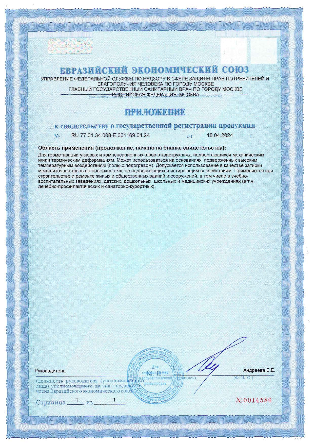 Однокомпонентный 100% силиконовый высокоэластичный санитарный герметик кислотного отверждения с фунгицидными добавками для устройства стыковых соединений в помещениях с повышенным влажностным режимом, таких как ванные комнаты, душевые, санузлы, прачечные и т.д. Для герметизации угловых и компенсационных швов в конструкциях, подвергающихся механическим и/или термическим деформациям. Образует прочный и одновременно высокоэластичный шов, выдерживающий деформацию до 25% и препятствующий проникновению влаги. Может использоваться на основаниях, подверженных высоким температурным воздействиям (полы с подогревом). Допускается использование в качестве затирки межплиточных швов на поверхностях, не подвергающихся истирающим воздействиям. Применяется при строительстве и ремонте жилых и общественных зданий и сооружений, в том числе учебно-воспитательных заведениях, детских, дошкольных, школьных и медицинских учреждениях (в т.ч. лечебно-профилактических и санаторно-курортных).