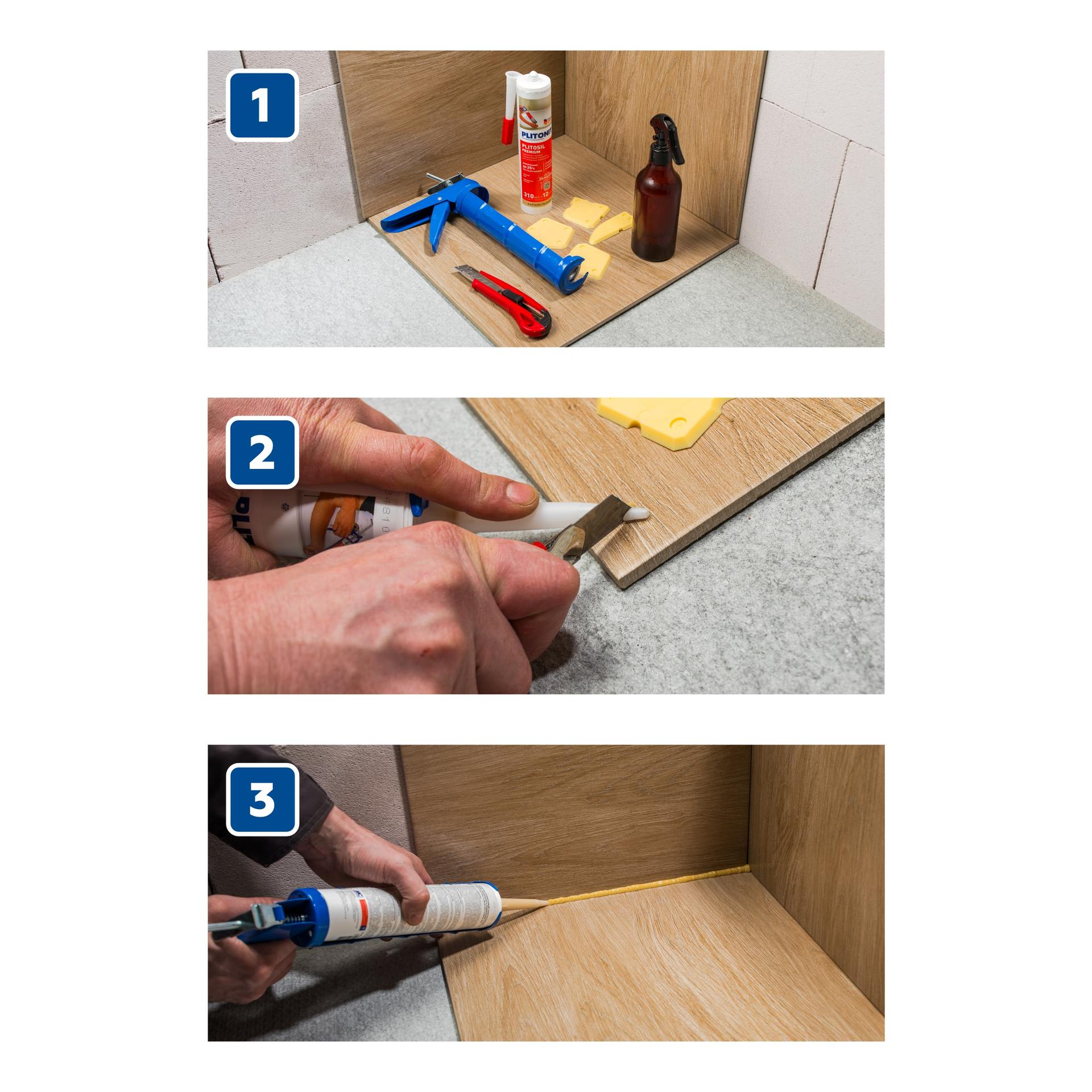 PLITOSIL Premium - высокоэластичный силиконовый санитарный герметик кислотного отверждения для влажных помещений