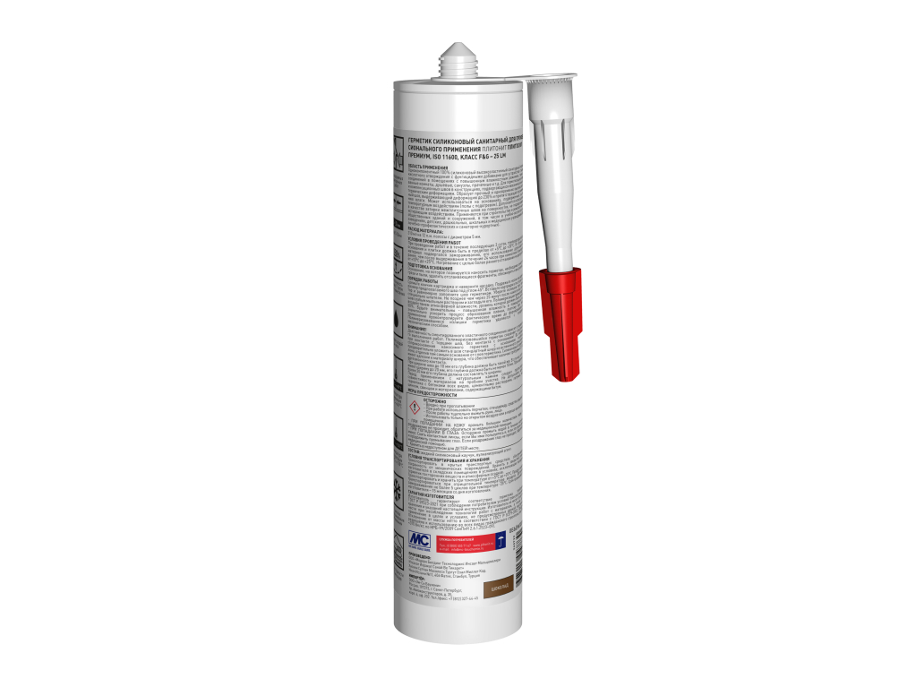 Однокомпонентный 100% силиконовый высокоэластичный санитарный герметик кислотного отверждения с фунгицидными добавками для устройства стыковых соединений в помещениях с повышенным влажностным режимом, таких как ванные комнаты, душевые, санузлы, прачечные и т.д. Для герметизации угловых и компенсационных швов в конструкциях, подвергающихся механическим и/или термическим деформациям. Образует прочный и одновременно высокоэластичный шов, выдерживающий деформацию до 25% и препятствующий проникновению влаги. Может использоваться на основаниях, подверженных высоким температурным воздействиям (полы с подогревом). Допускается использование в качестве затирки межплиточных швов на поверхностях, не подвергающихся истирающим воздействиям. Применяется при строительстве и ремонте жилых и общественных зданий и сооружений, в том числе учебно-воспитательных заведениях, детских, дошкольных, школьных и медицинских учреждениях (в т.ч. лечебно-профилактических и санаторно-курортных).