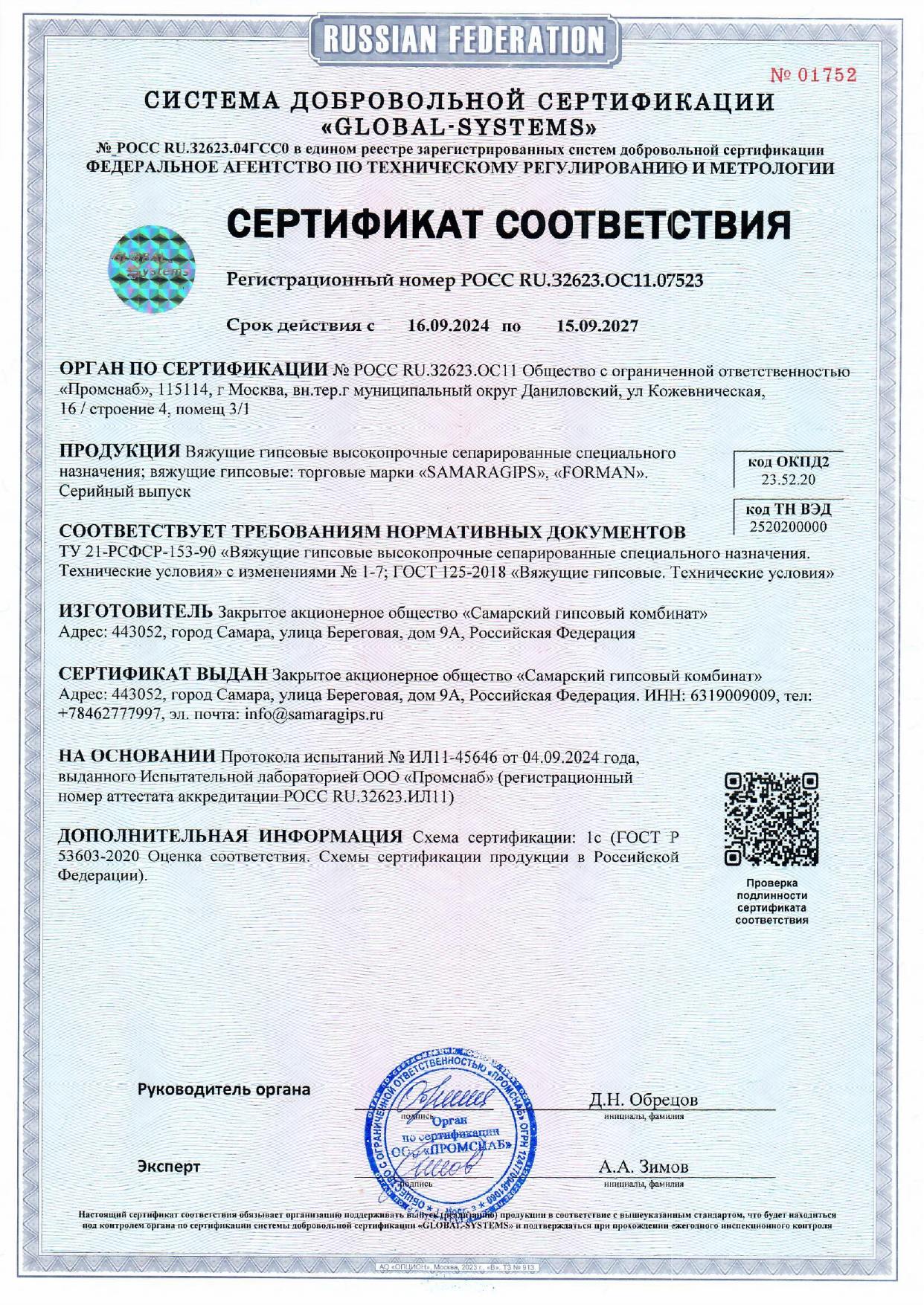 | Тип товара: | Гипс высокопрочный ГВВС-16 |